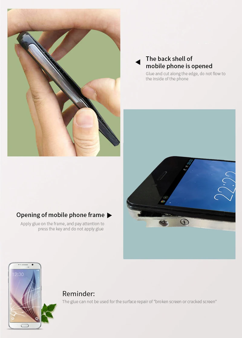 T9000 клей может приклеивать больше материалов, он подходит для металла, стекла, керамики, камня, бамбука, дерева, ткани, кожи, PE, PP, PVC, ABS, нейлона, губки, пленка, ткань, электронные компоненты, пластик, резина, волокно, бумага, мобильный телефон рамка, ЖК-экран, средняя рамка, рамка, кронштейн, основные преимущества: низкий запах, липкий акрил не вызывает коррозии.