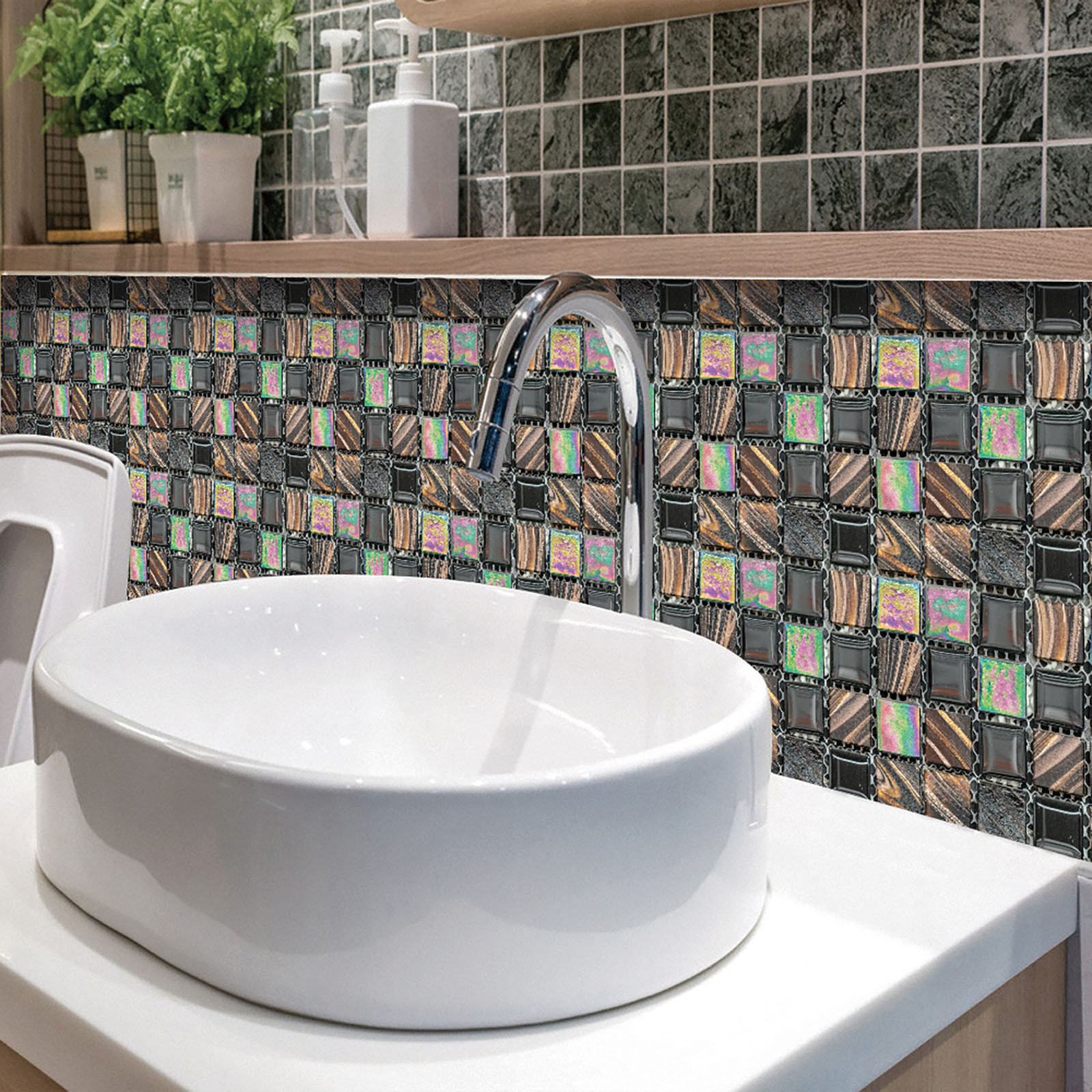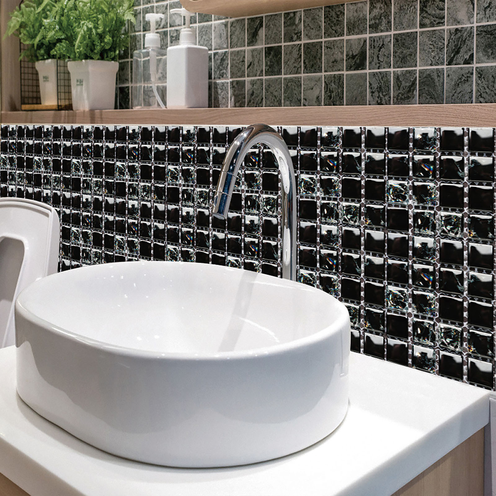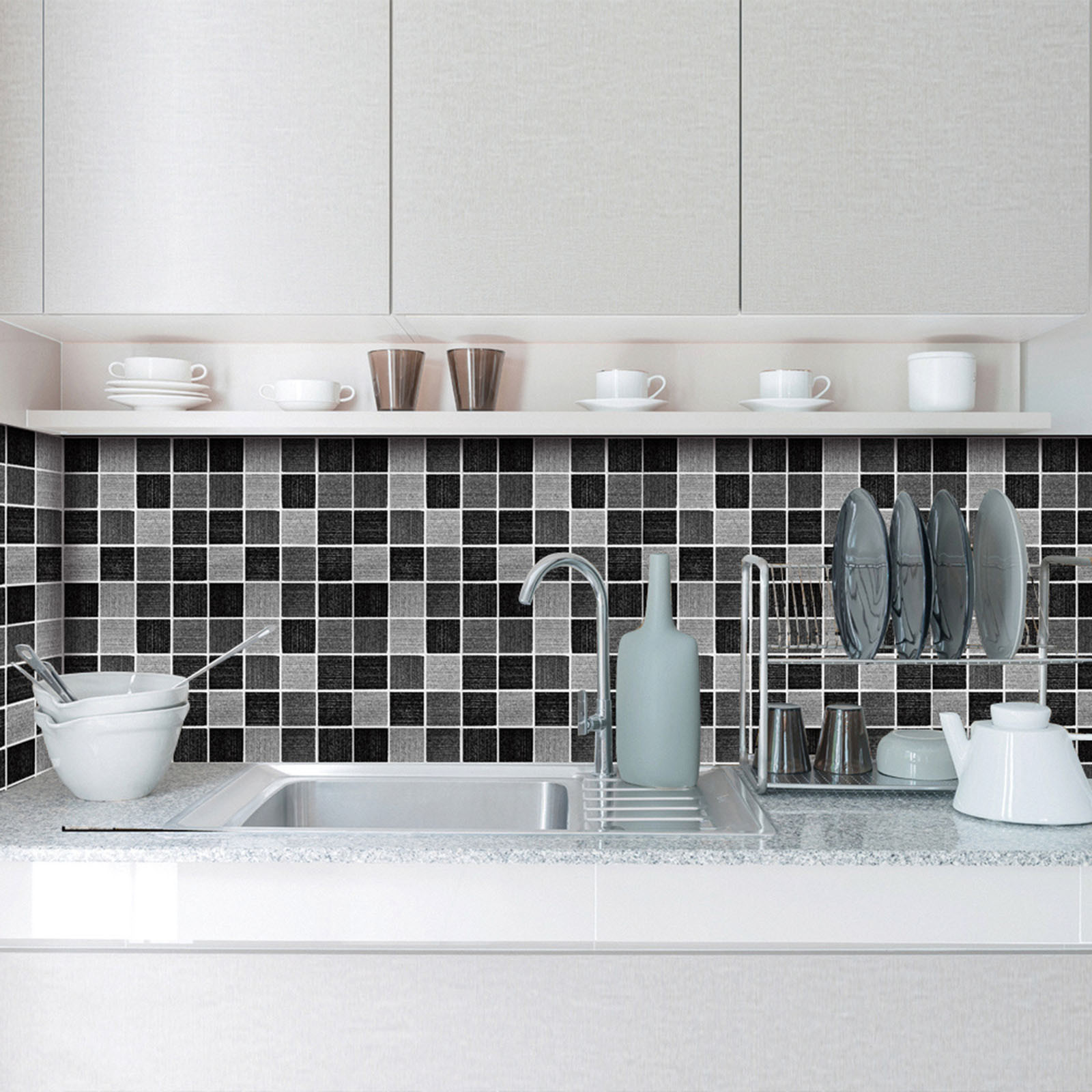 5. Легко сделать это самостоятельно-приклейте к плитке для разбрызгивания на кухне или ванной, самоклеящаяся, устойчивая адгезия, может быть хорошо Прошита И установлена в соответствии с размером, может быть согнута к углу, без затирки, без клея, без беспорядка, без специальных инструментов, Опыт не требуется.
