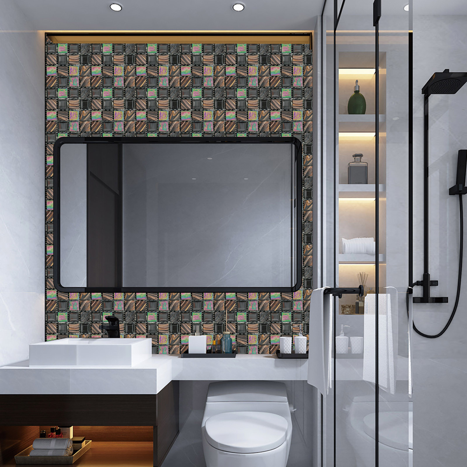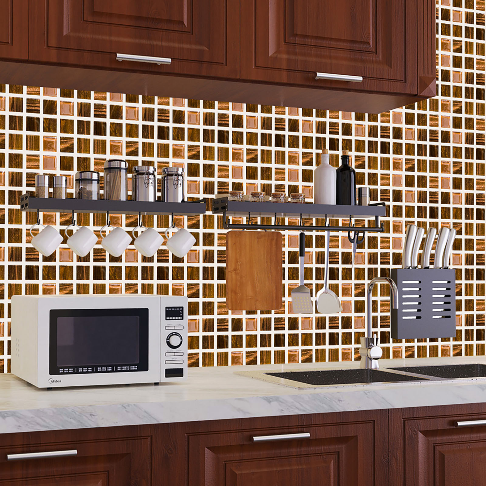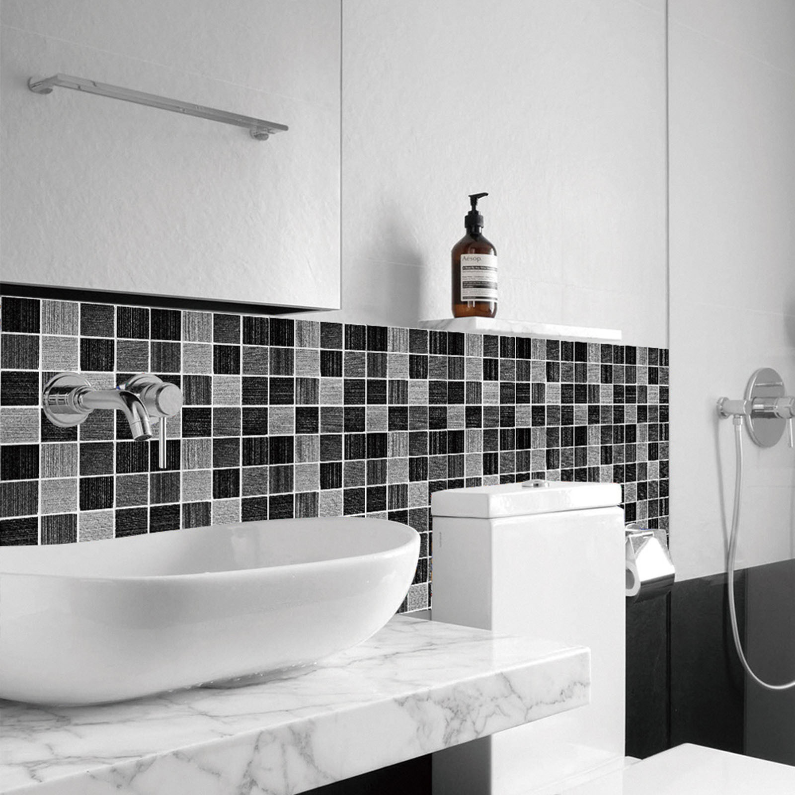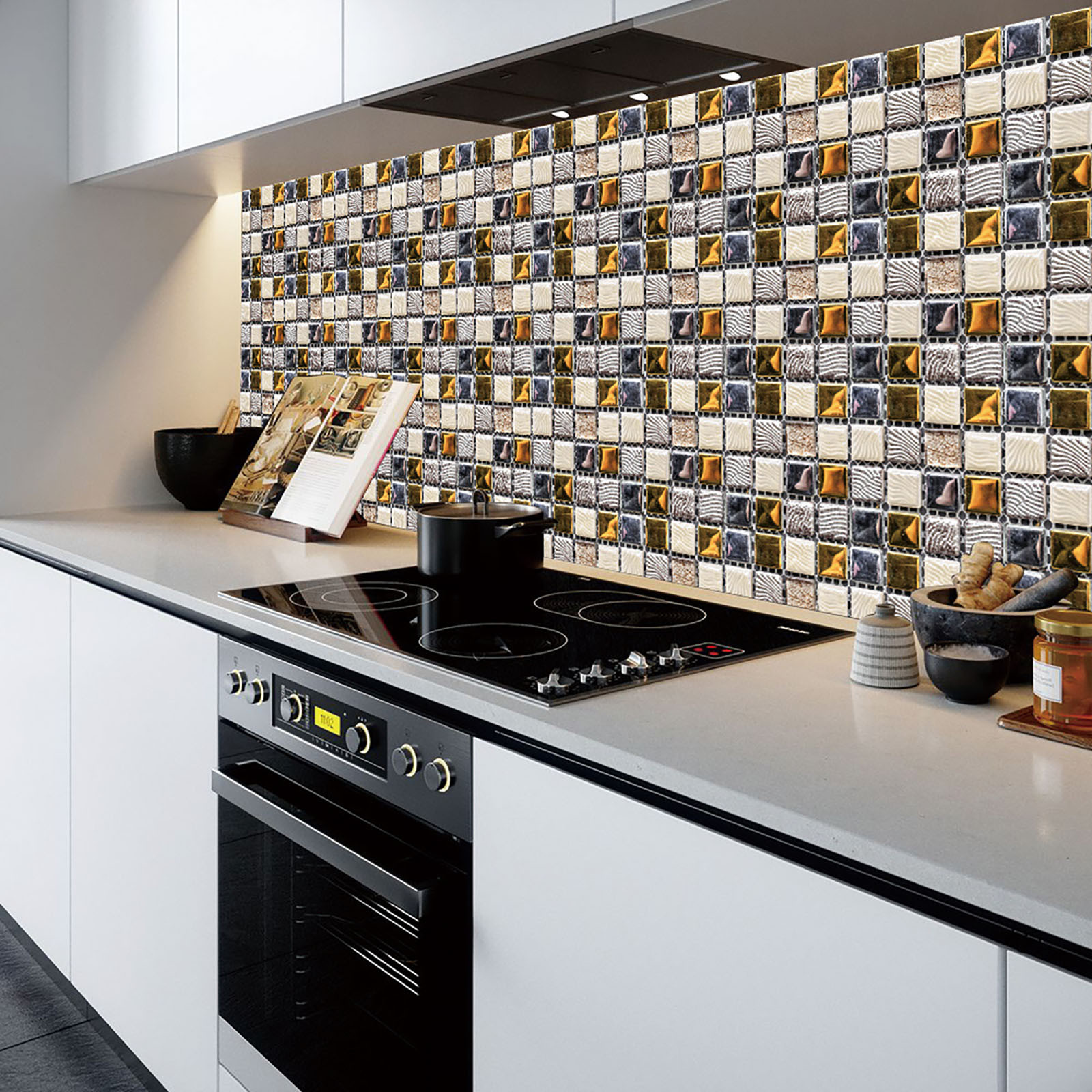 5. Легко сделать это самостоятельно-приклейте к плитке для разбрызгивания на кухне или ванной, самоклеящаяся, устойчивая адгезия, может быть хорошо Прошита И установлена в соответствии с размером, может быть согнута к углу, без затирки, без клея, без беспорядка, без специальных инструментов, Опыт не требуется.