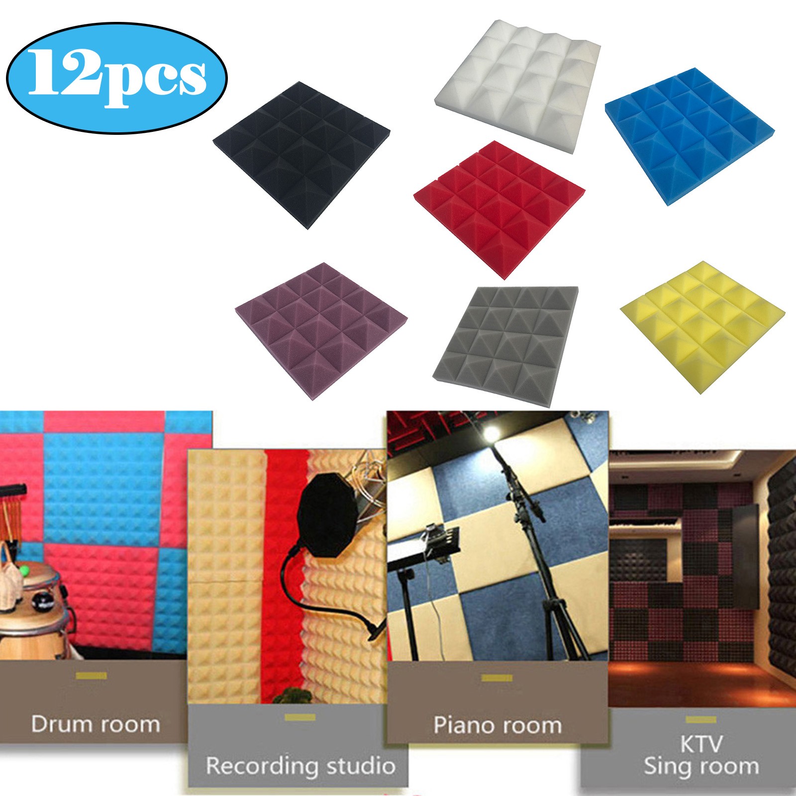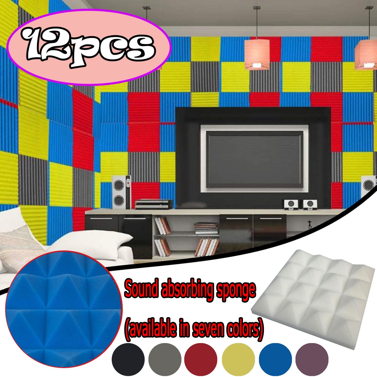 12 шт Высокая плотность акустическая пена Звукоизоляционная хлопковая шумоизоляционная губка Звукоизоляционная пена для KTV Cinema обработка Звукоизоляционная пена # G
