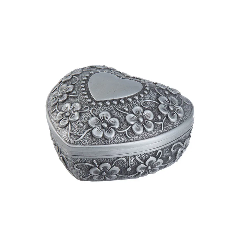 Дизайны с гравировкой: каждая винтажная цинковая шкатулка для украшений, из сплава выгравирована цветами снаружи и серебристой формой сердца в центре, выглядит антикварно и красиво, как маленькая шкатулка для украшений