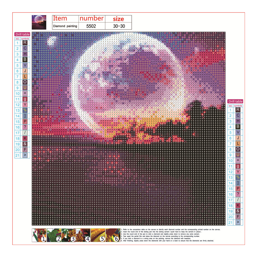 6. Для того, чтобы создать идеальную картину с бриллиантами, рисунки, размещенные в одном месте, каждый ряд символов не должны оставаться приклеенными алмазами.