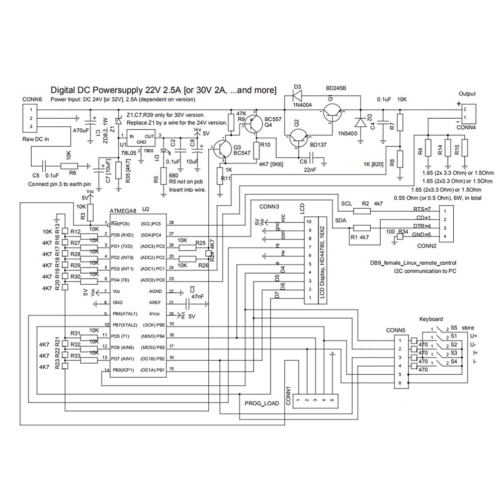 Это совершенно функциональный Регулируемый источник питания постоянного тока DIY kit, Диапазон выходного напряжения 0-28 в и выходной ток 0.01-2A. Вы можете удобно регулировать выход с помощью кодировщика; Он также может использоваться в качестве источника постоянного тока.