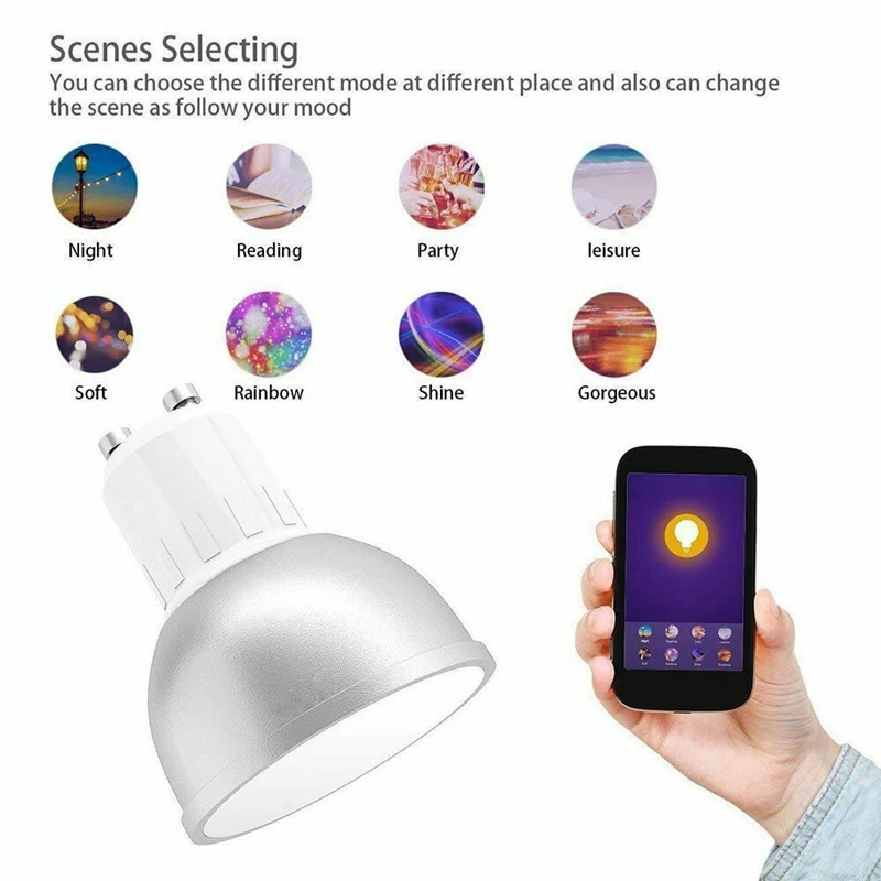 Прочный и надежный: 5 Вт умный WIFI светильник, Стандартный GU10 держатель лампы, Входное Номинальное напряжение AC85-265V.