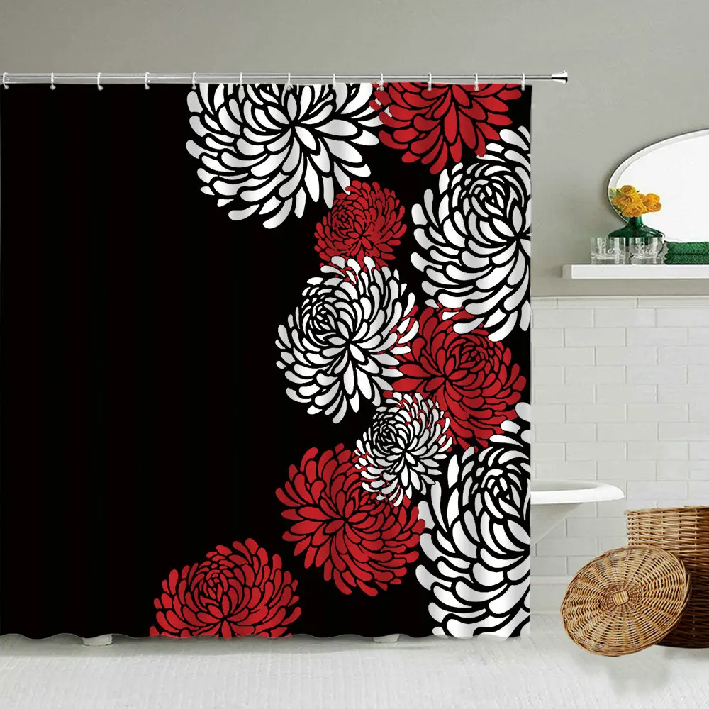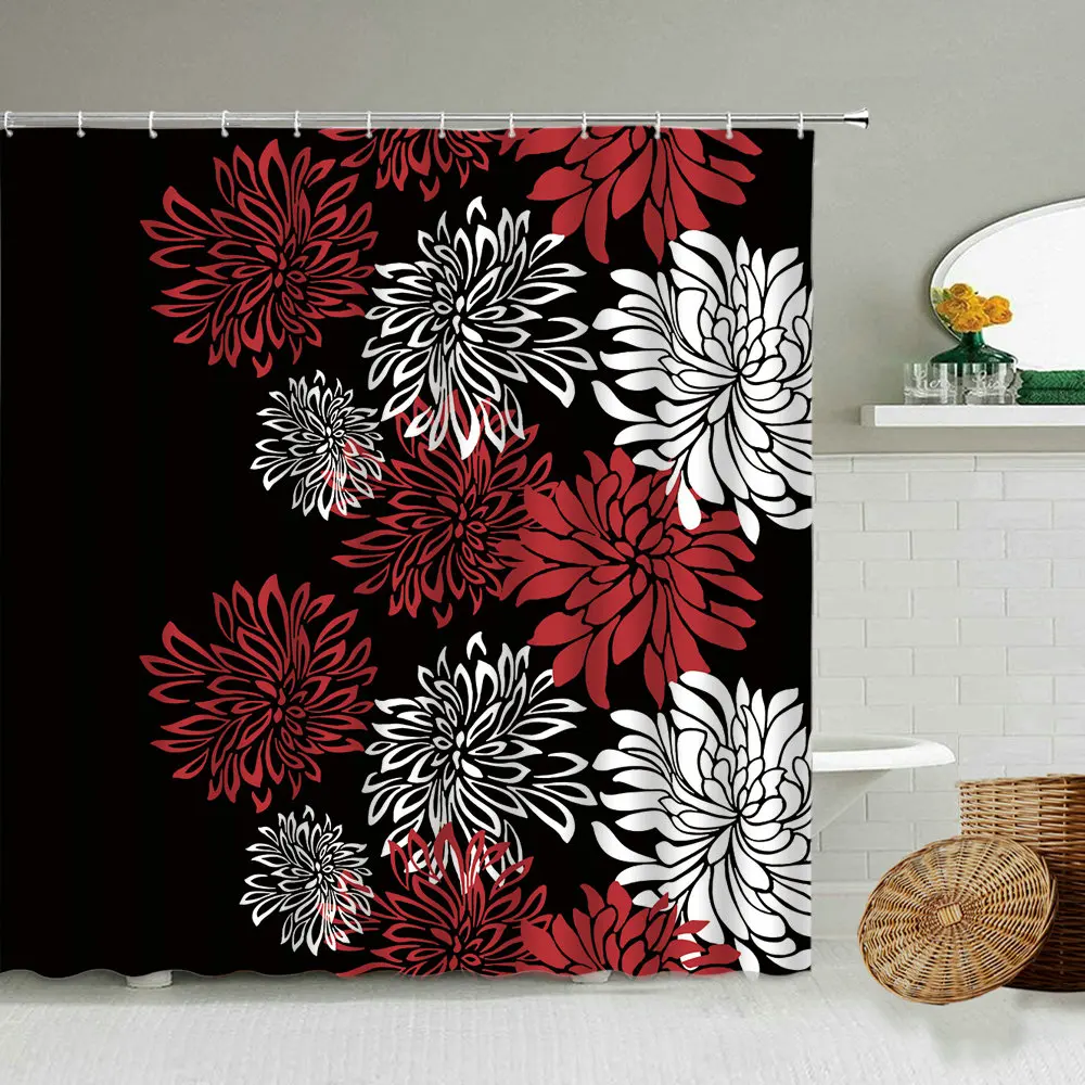 Красный И Белый Абстрактный Цветочный узор занавеска для душа черный фон аксессуары для ванной комнаты водонепроницаемые перегородки занавески