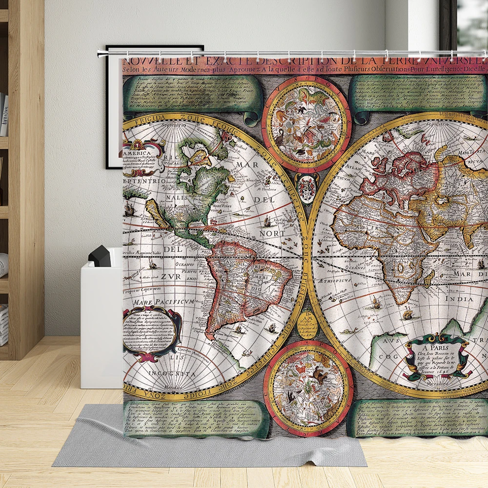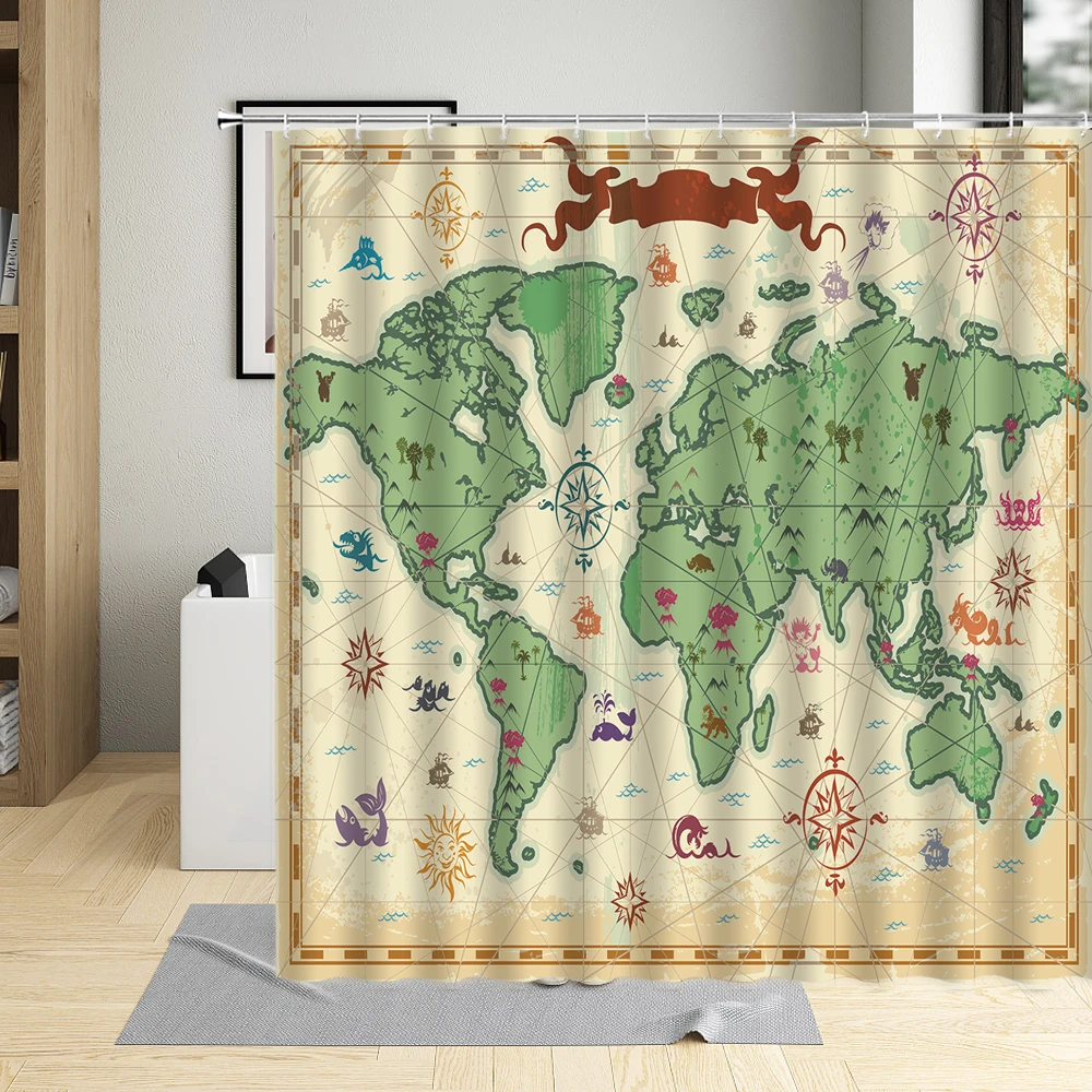 Ретро морская карта мира Печать занавеска для душа винтажная Водонепроницаемая полиэфирная ткань Ванная комната Декор Ванна занавеска s с крючками