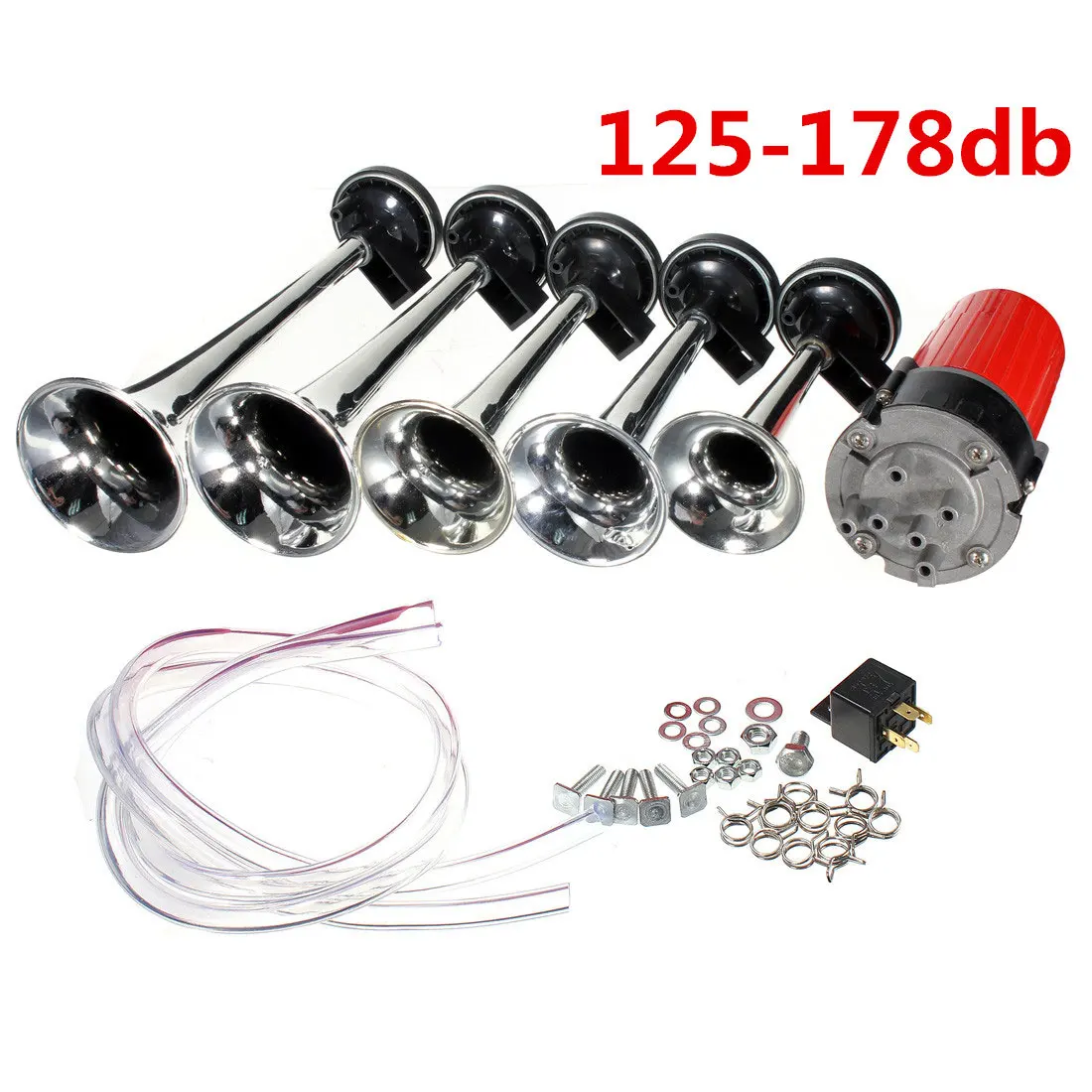 Поставляется с 5 хромированными трубками Dixie 12V air horns