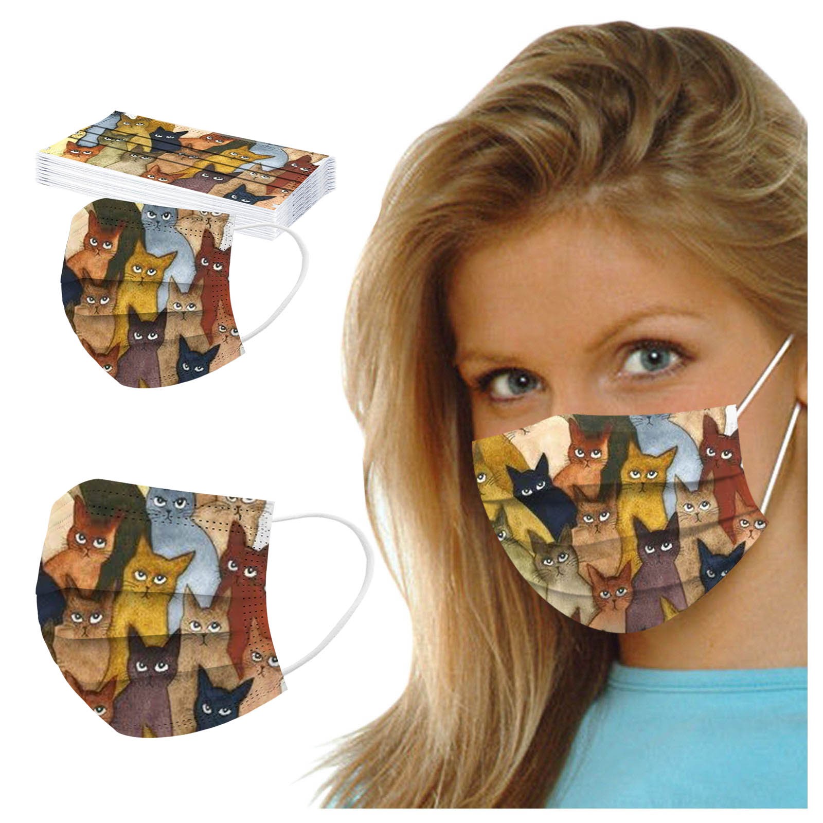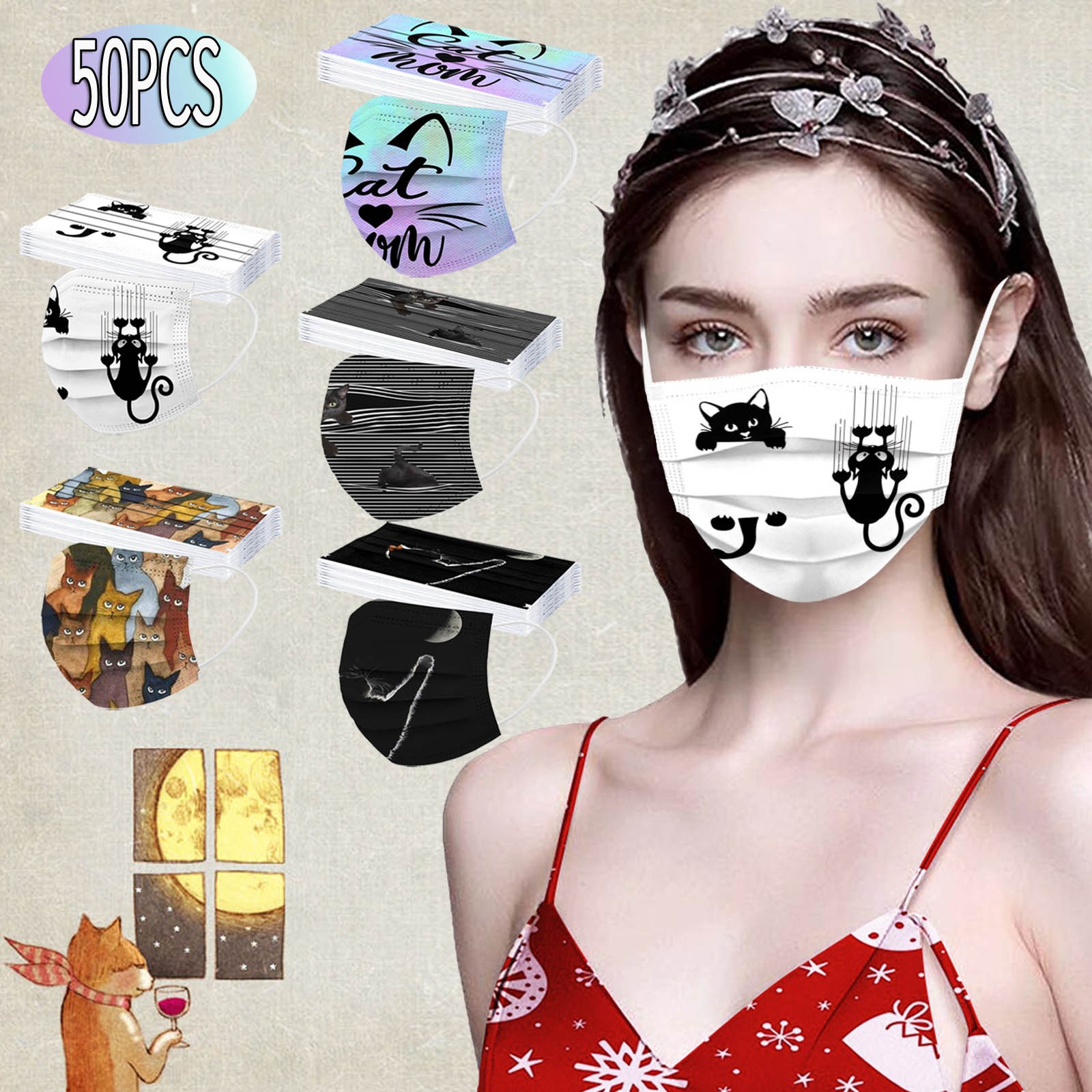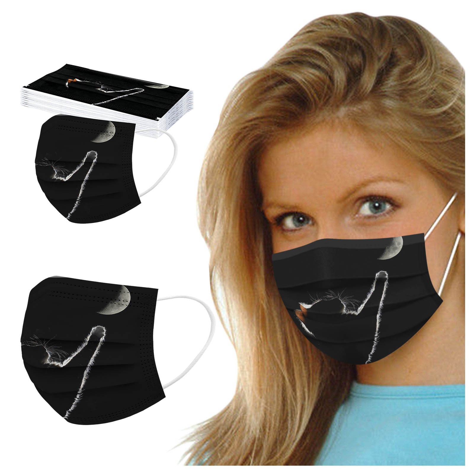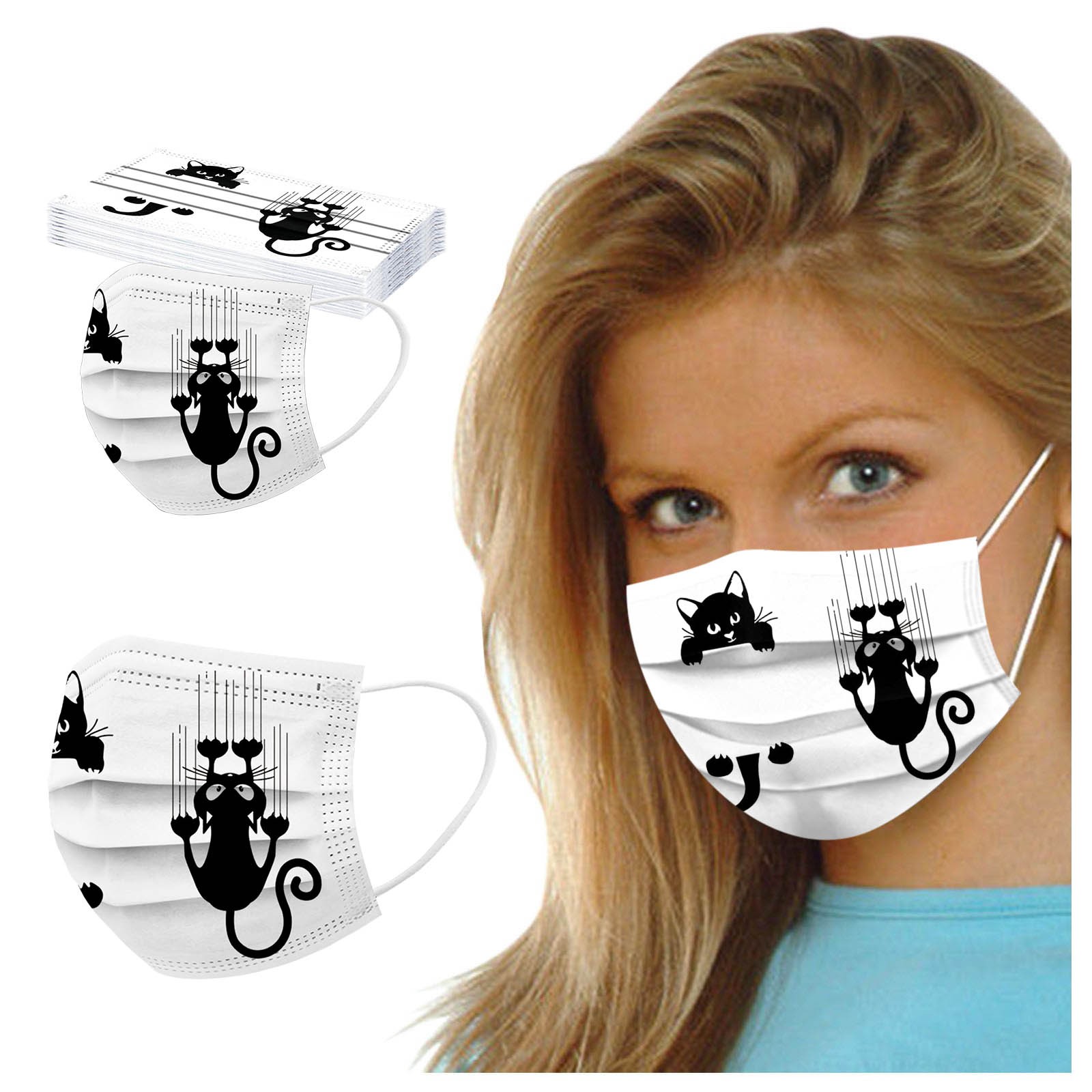 50 шт., одноразовая маска для лица для женщин, мужчин, кошек, 3 слоя, маска для Anti-PM2.5 ушей
