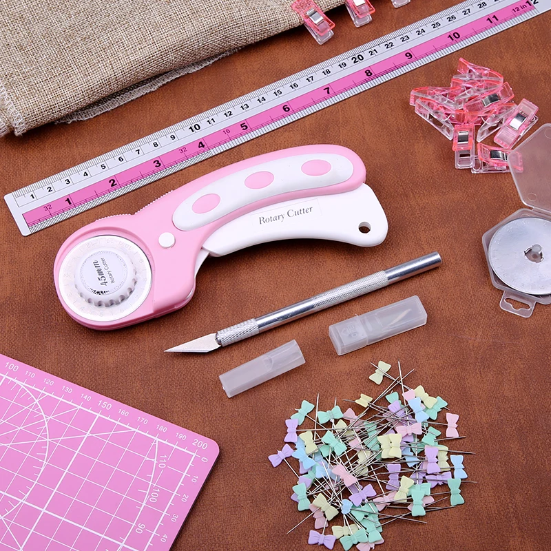 1. Этот 45 мм Вращающийся резак с лезвиями удобен и прост в использовании. Его нескользящая ручка эргономично разработана для уменьшения усталости суставов. 2. Качество, самовосстановление, можно использовать две стороны. Для предотвращения резки рабочего стола. Роторный резак должен использоваться вместе с разделочной пластиной подушки. 3. Сочетание острых резных ножей и линейки с четкими весами позволяет сделать более точную резку. 4. Швейный зажим изготовлен из высококачественного ПВХ-пластика, экологически чистый и нетоксичный, и отверстие может быть использовано для удобного крепления Тканевого слоя. 5. Водорастворимая Ручка может сделать отметки удобно и быстро, и легко моется. Позиционный штифт может пометить ткань для легкого шитья.