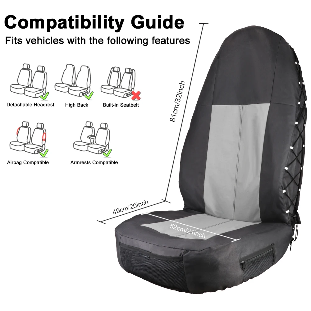 2.、Подушка безопасности совместима-Передовая двойная прошитая технология позволяет подушки безопасности разворачиваться через швы крышки сиденья, крышка сиденья совместима со всеми боковыми подушками безопасности транспортного средства, подходит для большинства сидений со встроенными или регулируемыми подголовниками