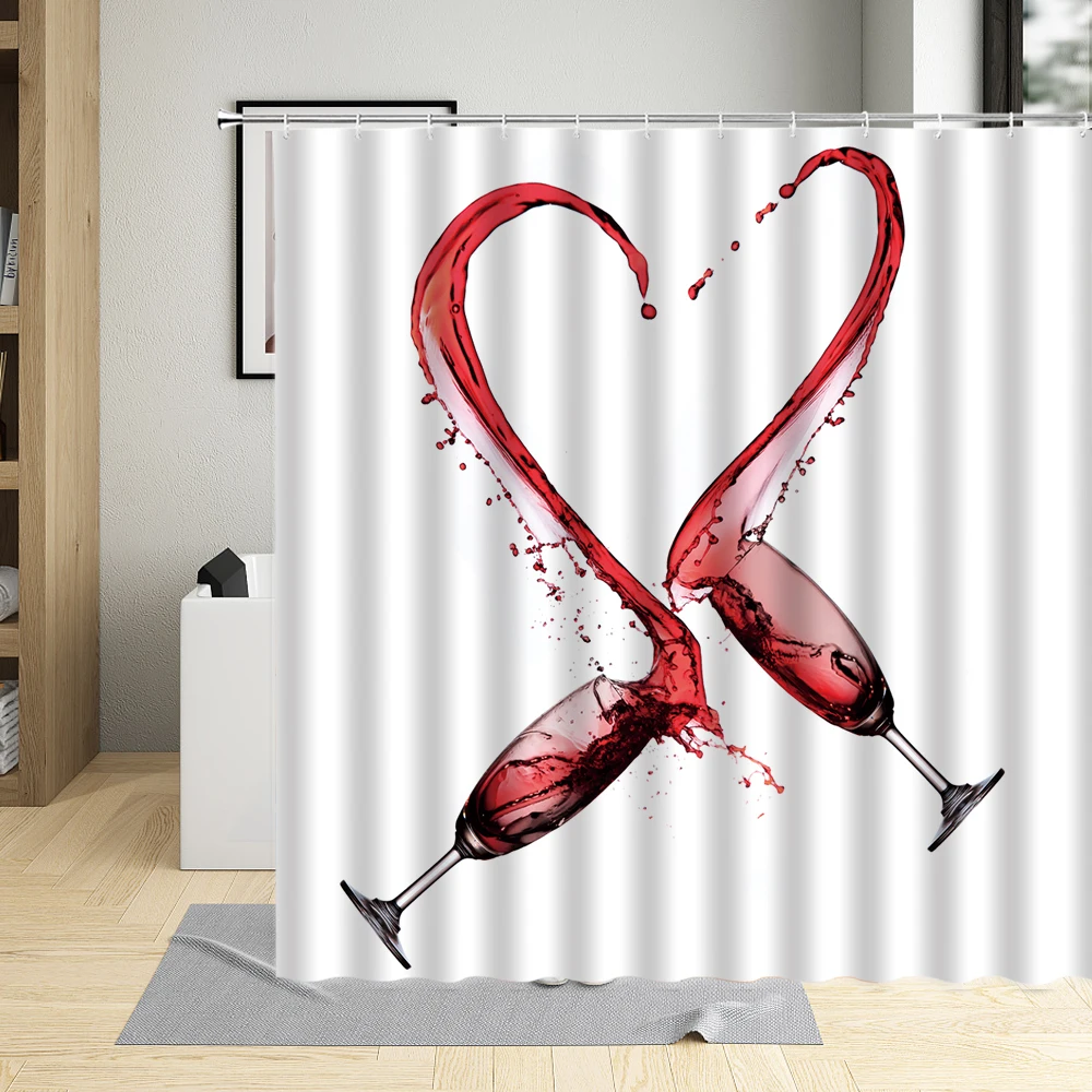 Красное вино очки абстрактные Любовь Сердце брызги шаблон Ванная комната Декор водонепроницаемый белый Душ занавес с крючками набор для ванной занавес s