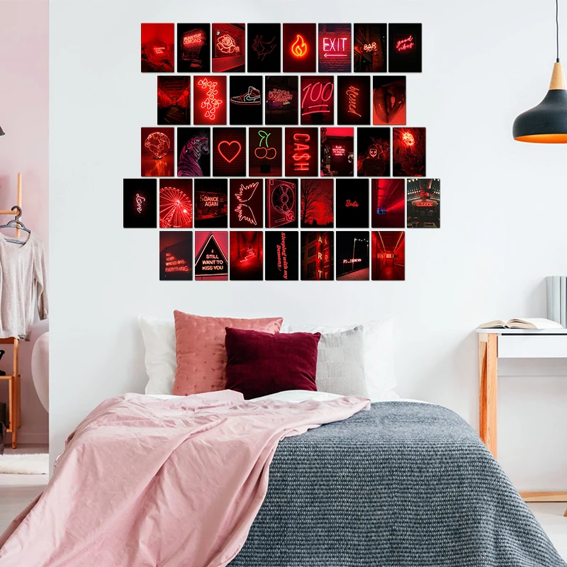 Продукт: 50 шт. красные неоновые эстетические фотографии наборы настенных коллажей