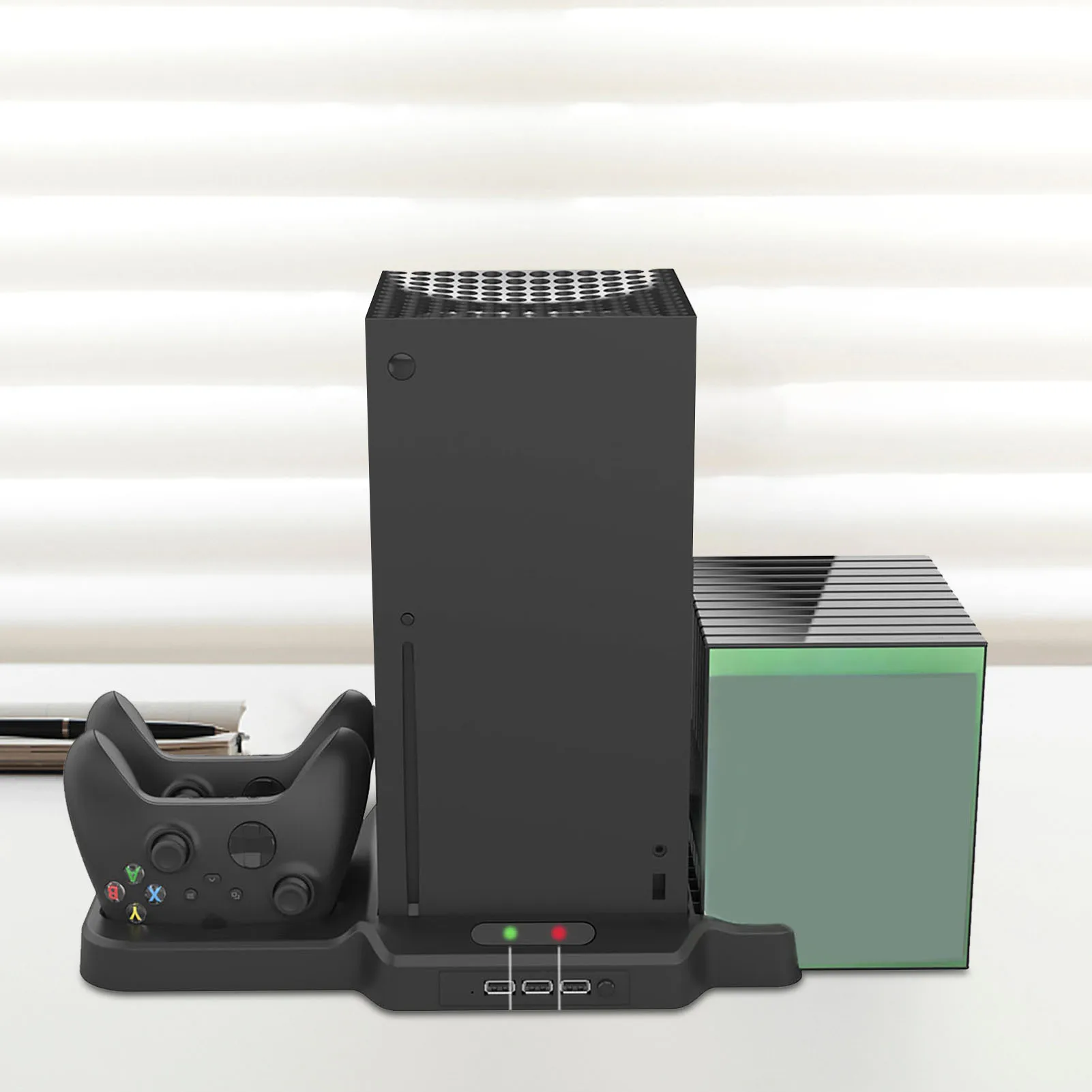 1. Носитель для хранения игровых дисков: с носителем для хранения игровых дисков может храниться до 11 коробки для дисков. Включая два зарядных дока, он может заряжать два контроллера Xbox серии S/X одновременно.2. Из-за ручного измерения, продукт имеет некоторые погрешности в размере.