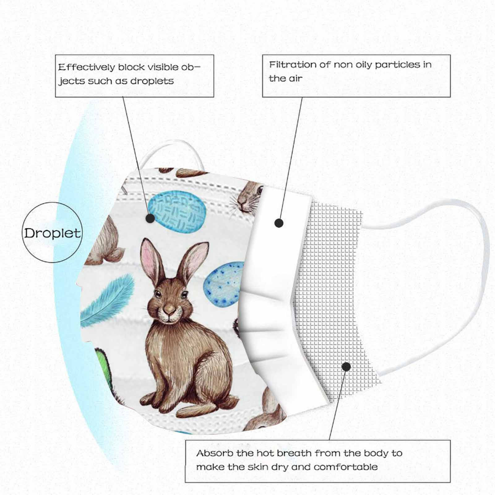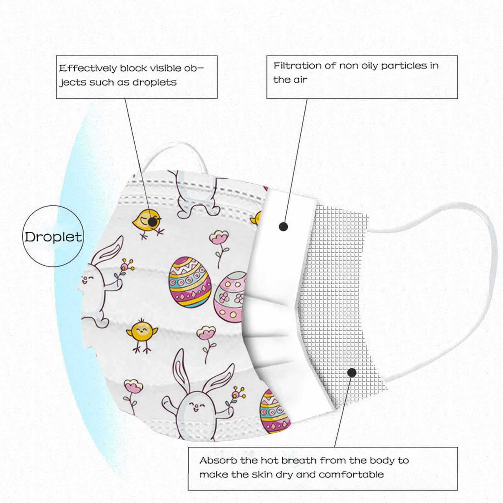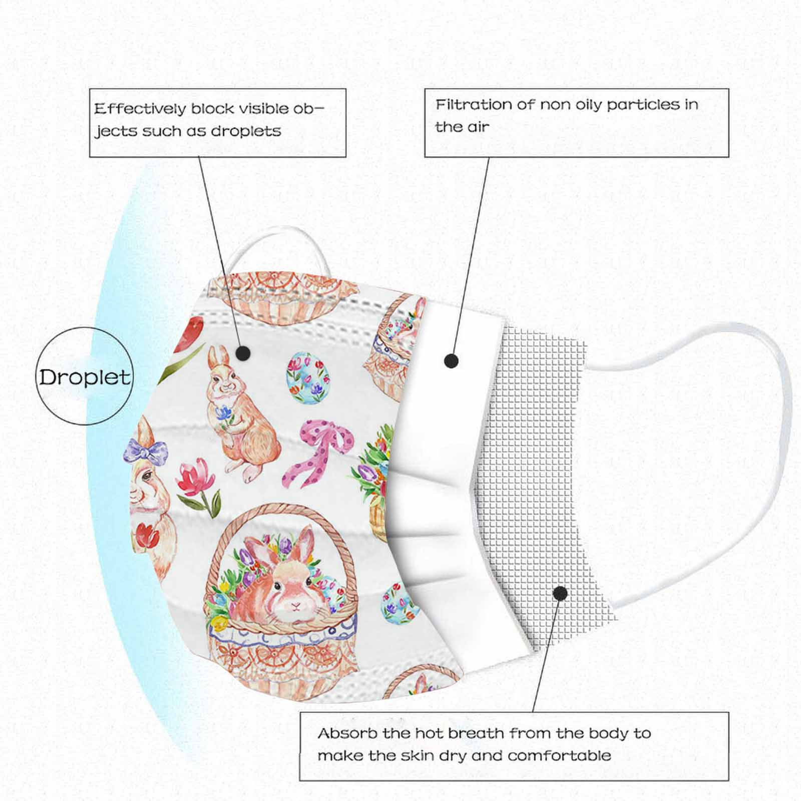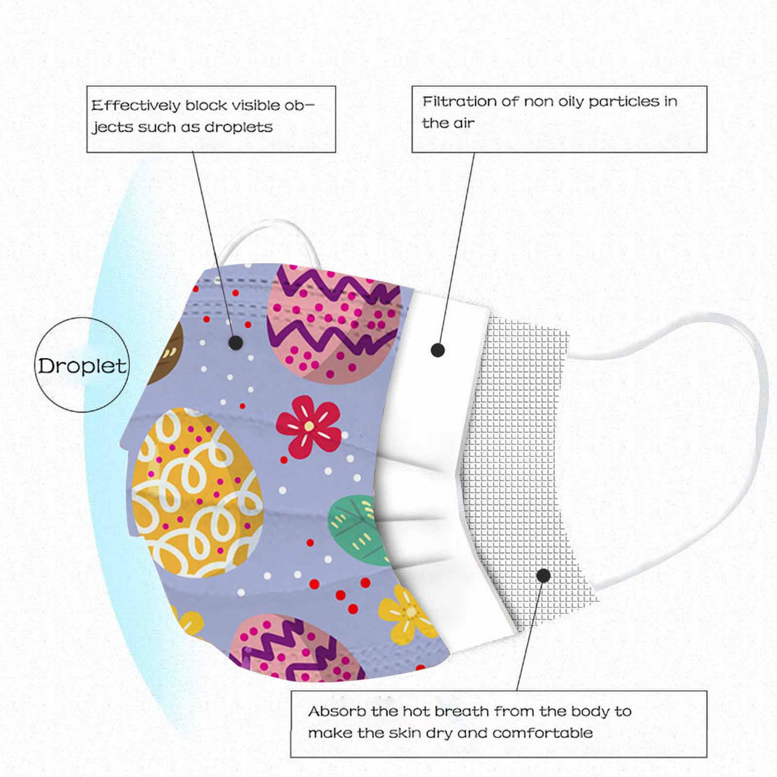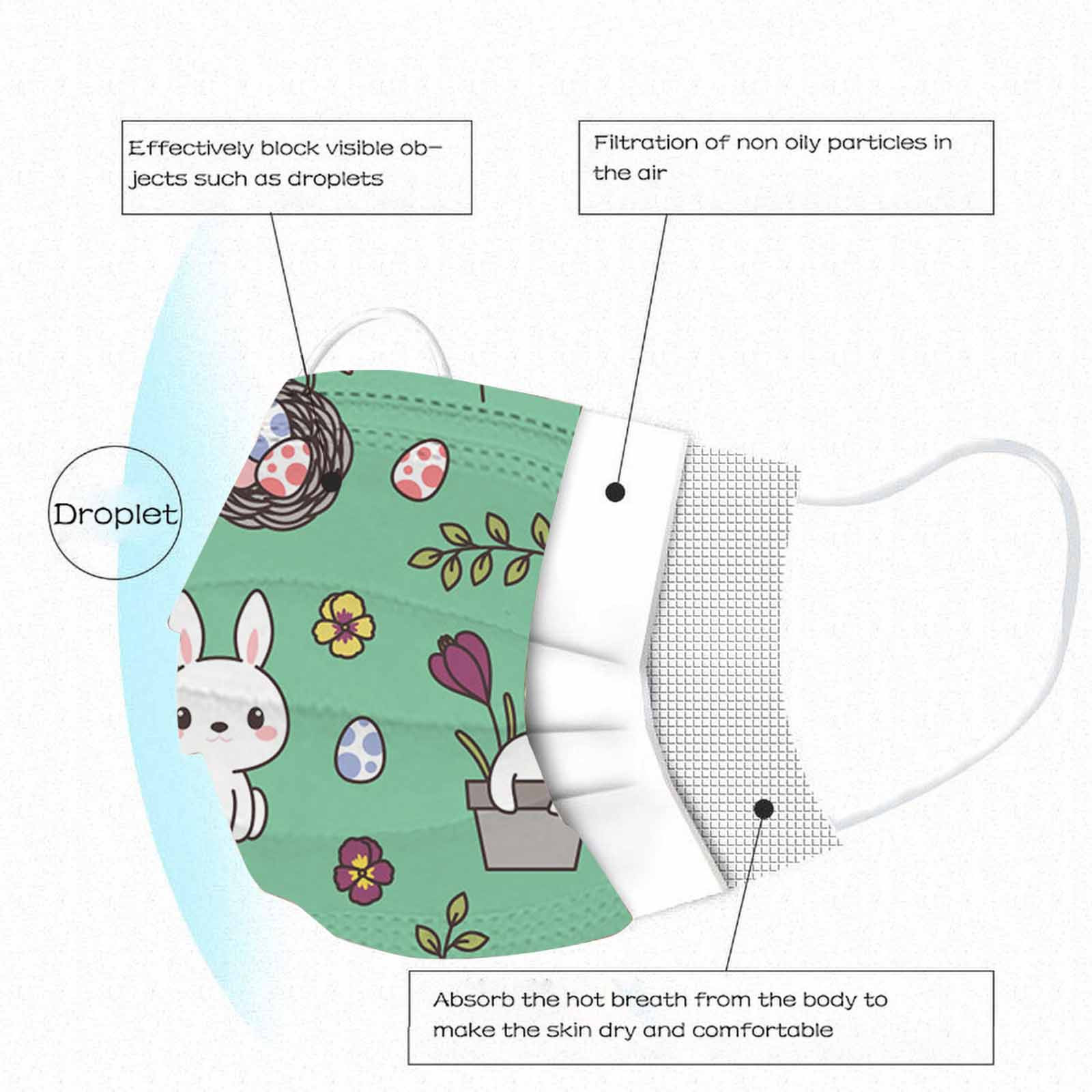 The 3 ply non-woven disposable mask is made of 3 ply non-woven material, it is healthy and safe for you to use. Breathable material and cute patterns, which makes it useful and fashionable. Special 3 ply non-woven design, provides some protections against dust, automobile exhaust, pollen, etc. Elastic ear loop, easy to wear and no pressure to the ears. nail salon or any other areas where protection might be required