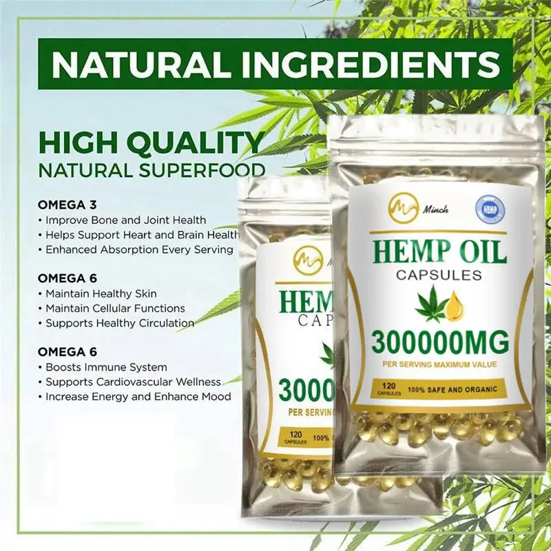 Минч 120 шт конопляное масло капсулы органические КБР капсулы для лица Уход за кожей облегчение боли конопляное масло капсулы софтгеля для лучшего сна
