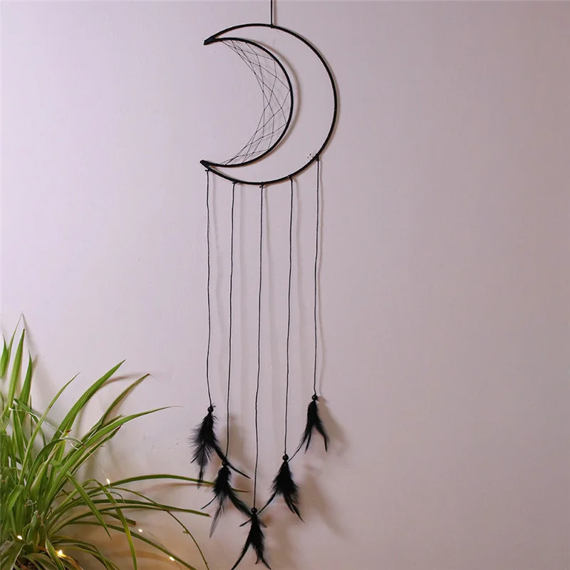 Материал изделия: хлопковая нить, перо Процесс производства: ручная подготовка Форма: луна Длина изделия: около 80 см Вес изделия: приблизительно 44 грамма