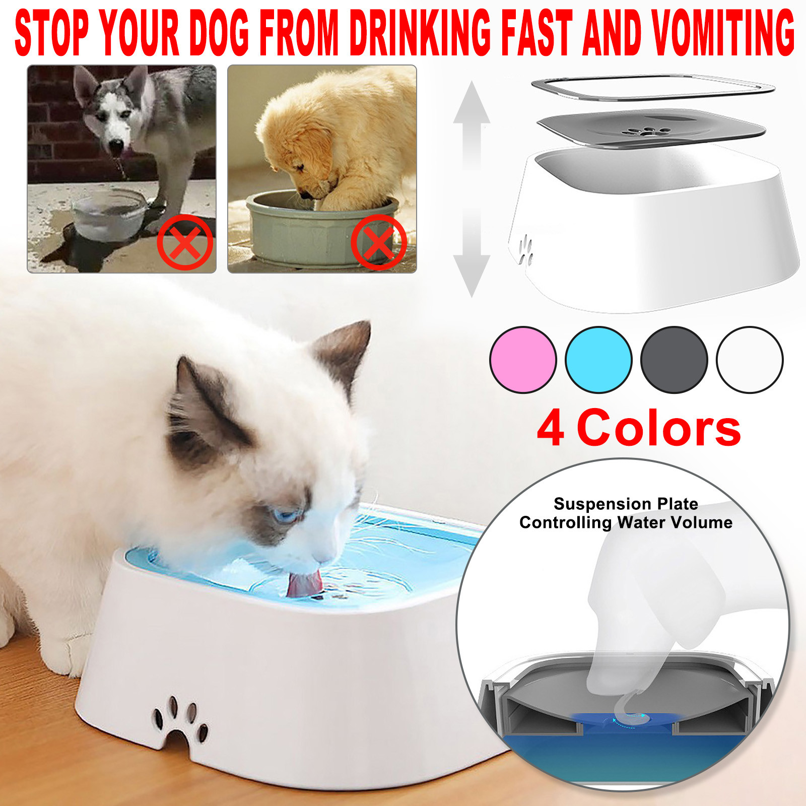 Регулятор громкости воды Чаша останавливает собаку от быстрого питья и рвоты