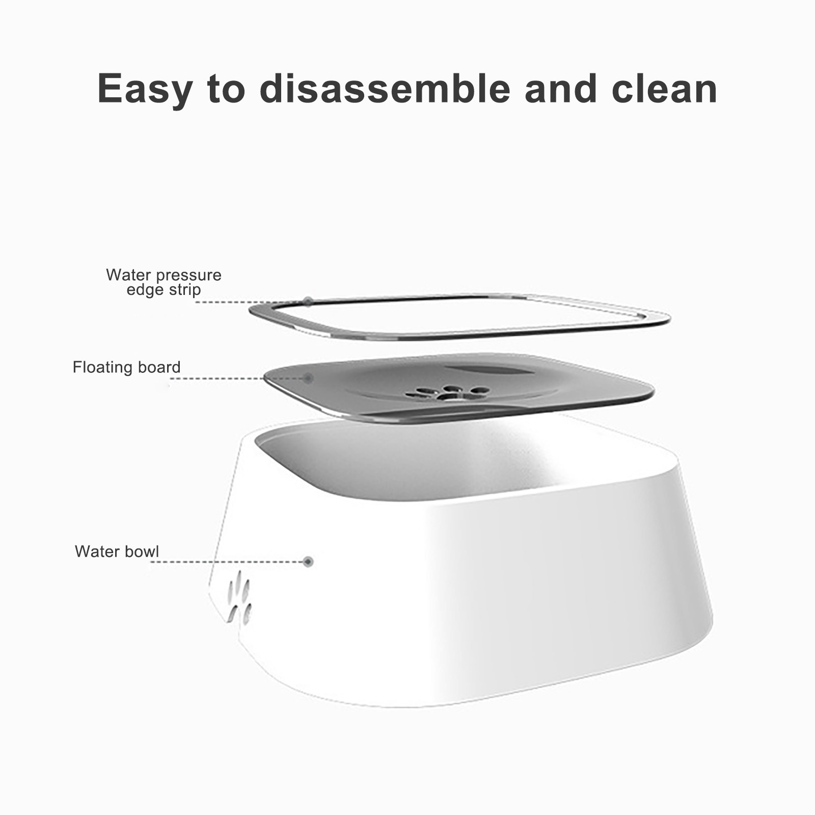 Он широкий Достаточно для всех типов собак. Позволяет пить под любым углом Они удобные. Чаша для воды полностью отстегивается и легко моется. Даже в посудомоечной машине. Водное кольцо является съемным и очень важным Чтобы очистить такБактерииНе накапливается под ним.