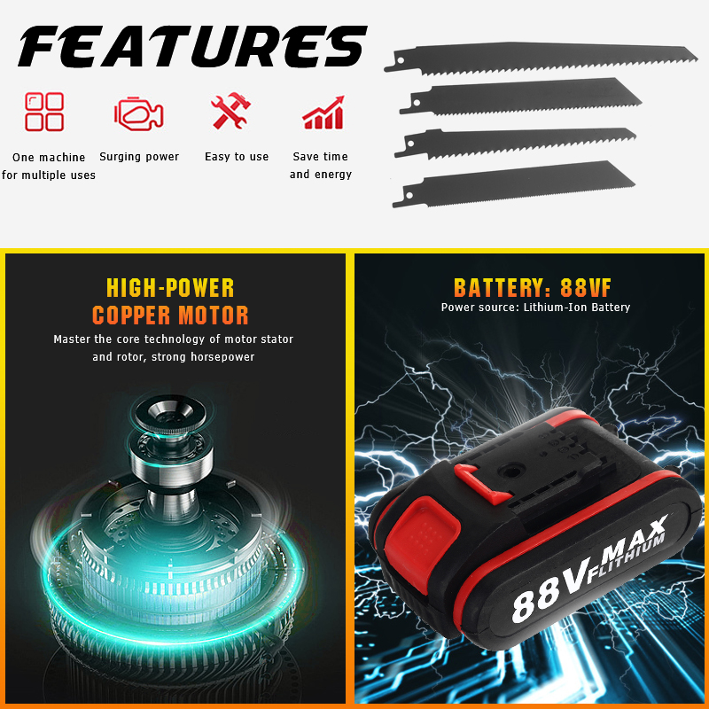 -Самоблокирующийся патрон, нажмите и удерживайте патрон, чтобы вставить пильный диск, всего 2S для установки и замены.