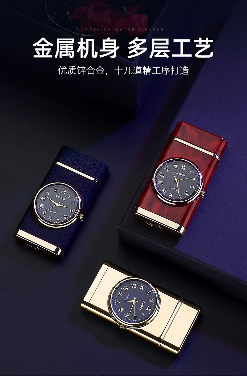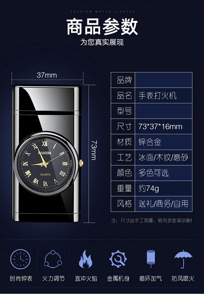 Портативная креативная металлическая зажигалка, ветрозащитные газовые зажигалки, часы, зажигалка для сигарет, плоский маленький распылитель, аксессуары для курения Если вы купили 2 шт. и больше, вы получите дополнительную скидку 3%. Если вы закажете в моем магазине, мы вышлем вам специальный подарок в вашей упаковке. Из-за газа не может высадить самолет, поэтому Зажигалка Мы отправляем все без газа. Вам нужно добавить газ самостоятельно. Сообщение с указанием нужного вам цвета