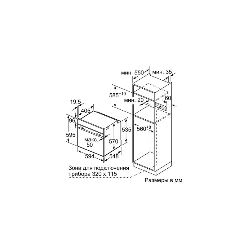 Общая информацияВстраиваемый электрический духовой шкаф с 7 режимами нагрева: 3D горячий воздух, Верхний/нижний жар, Гриль с конвекцией, Большой гриль, Режим для пиццы, Нижний жар, Горячий воздух gentleБольшой рабочий объём духового шкафа с эмалью лёгкой очистки GranitEnamelКоличество стекол в духовке: 2LCD-дисплей c индикацией белого цветаПолностью стеклянная внутренняя поверхность дверцы духовкиТемпературный диапазон 50 C° - 275 C°Комфорт и БезопасностьСистема Multifunction 7 режимов нагрева: верхний/нижний жар, нижний жар, конвекция, гриль с конвекцией, Vario-гриль большой площади, Vario-гриль малой площади, размораживаниеФункция "Быстрый разогрев"Система охлаждения прибора позволяет встроить в любой кухонный гарнитурВозможность установки телескопических полозьев (заказываются дополнительно)Температура наружного стекла до 50СОсвещение духовки 1 x 25 ВтТехническая информацияЭмалированный противень для выпечки, Комбинированная решетка, Универсальный противеньМощность подключения: 3.4 кВтКласс энергоэффективности (в соответствии с нормами ЕСNr. 65/2014): AЭнергопотребление за цикл в обычном режиме: 0.97 кВт/чЭнергопотребление за цикл в режиме усиленной работы вентилятора: 0.81 кВт/чКоличество камер: 1Источник нагрева: электрическийОбъём камеры: 71 лКабель длиной 120 см с евровилкойРазмеры прибора (ВxШxГ): 595 мм x 594 мм x 548 ммРазмеры ниши для встраивания (ВхШхГ): 585 мм - 595 мм x 560 мм - 568 мм x 550 ммПожалуйста, следуйте схемам встраивания и инструкции по монтажу