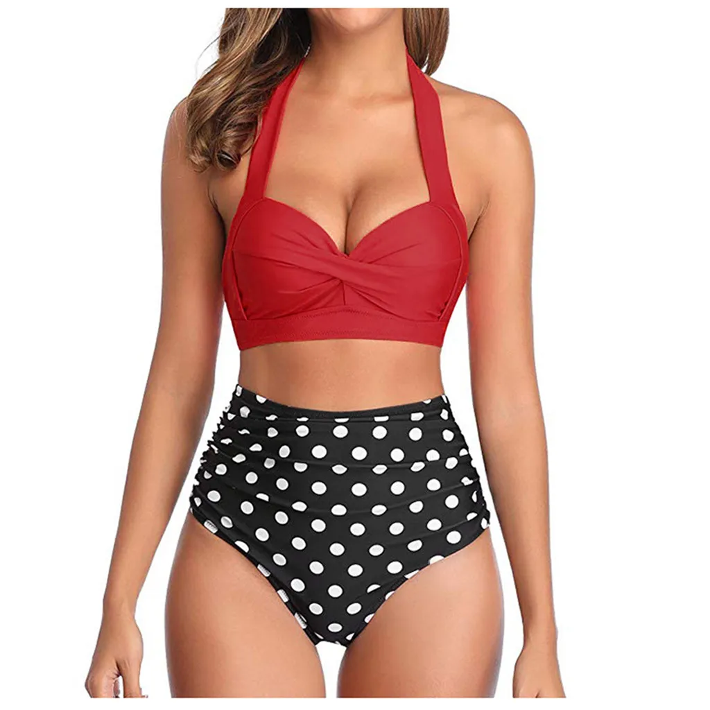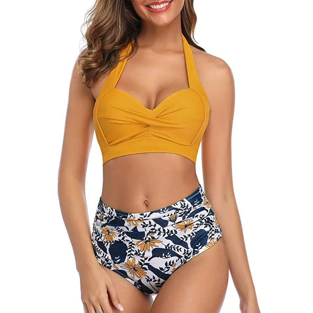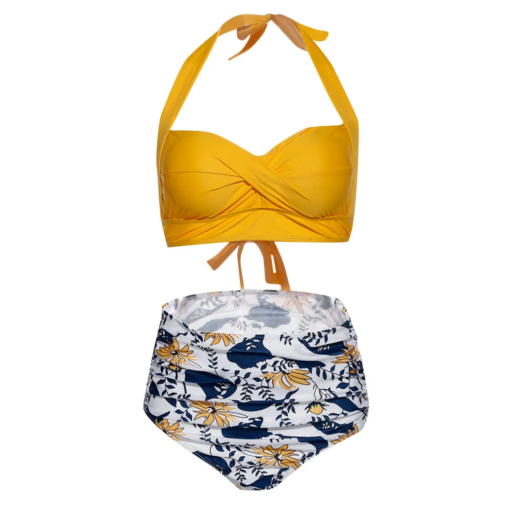 Женский винтажный купальник, комплект бикини с высокой талией и принтом
