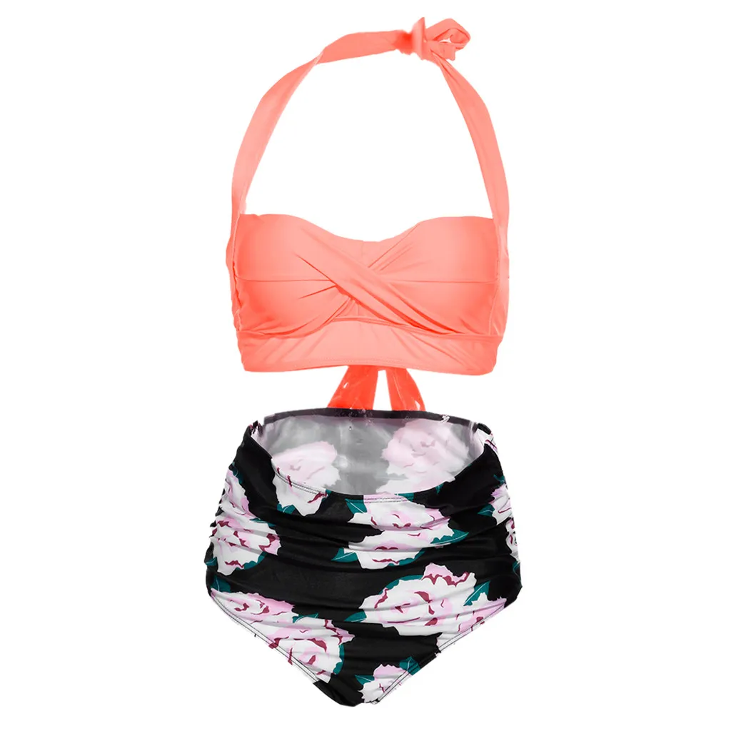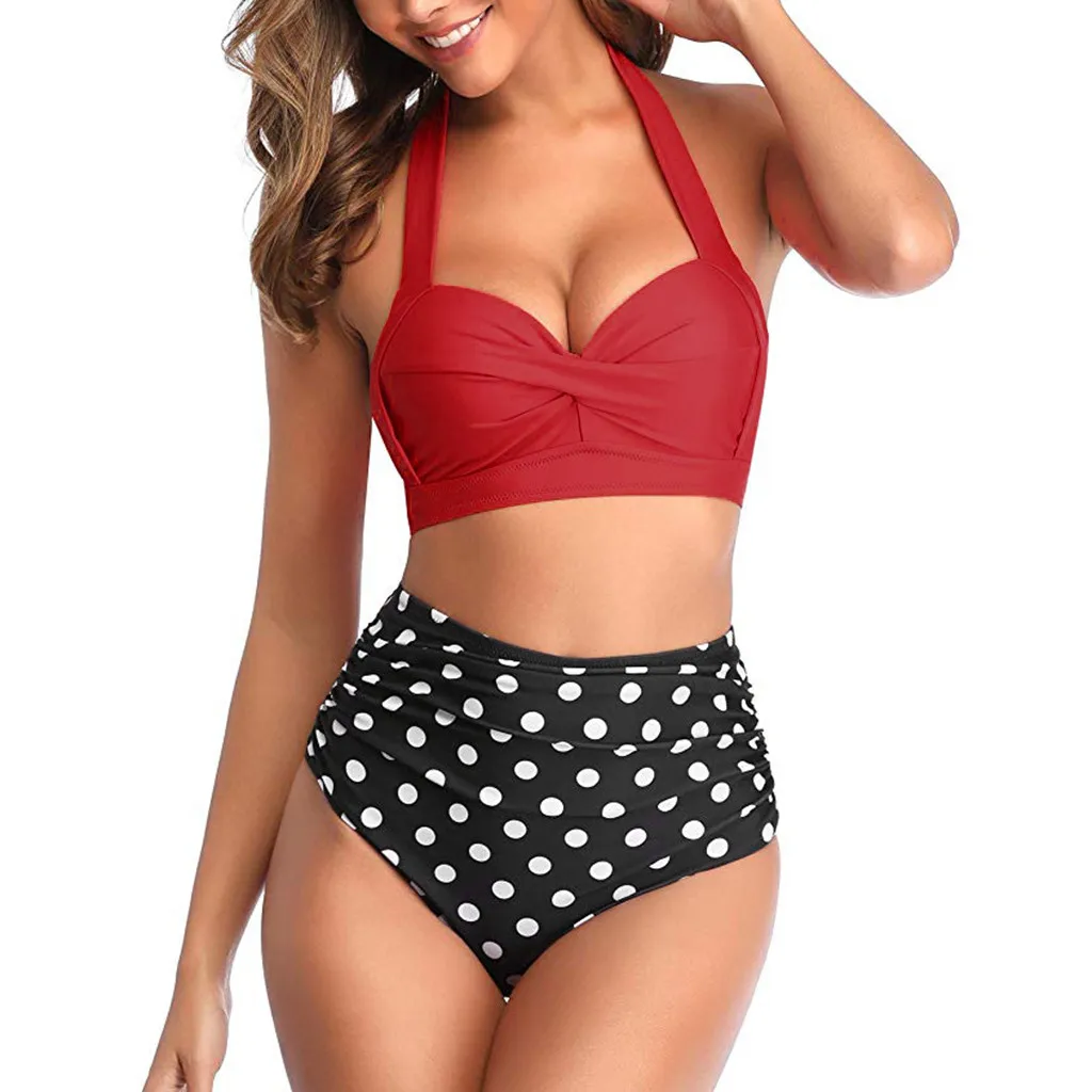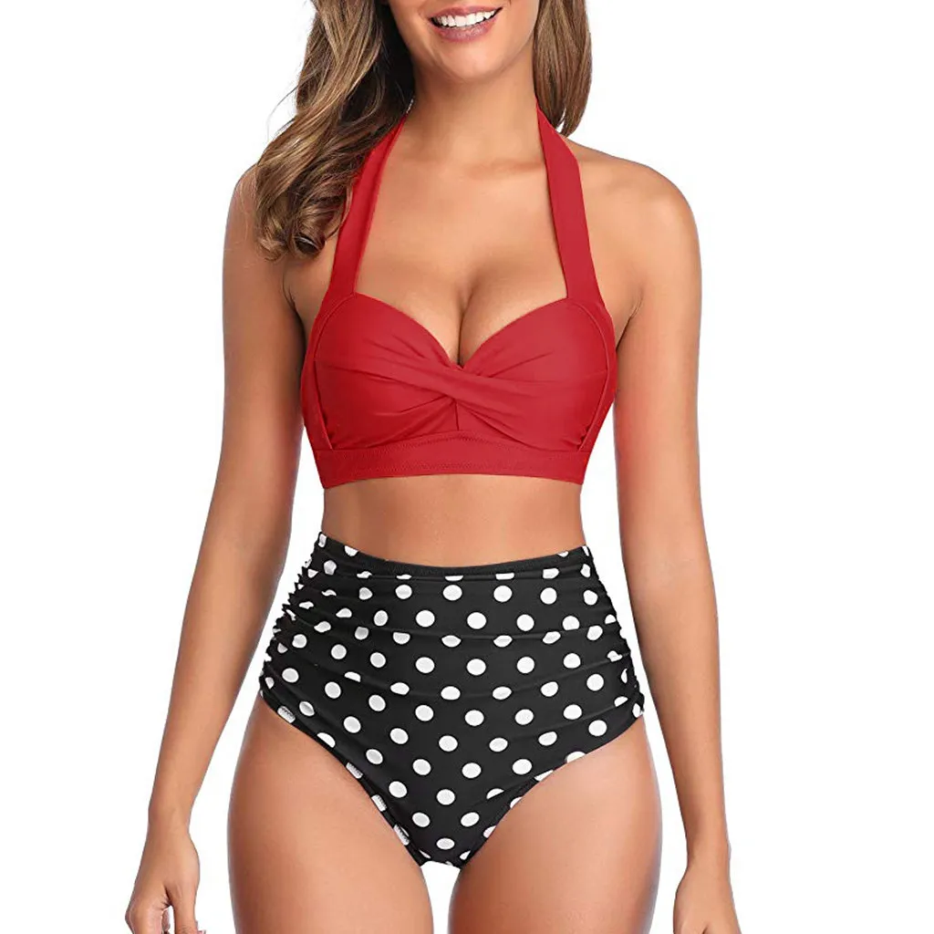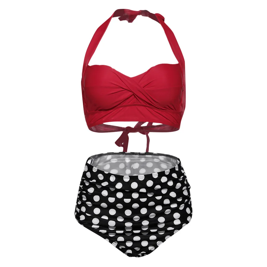 Женский винтажный купальник, комплект бикини с высокой талией и принтом
