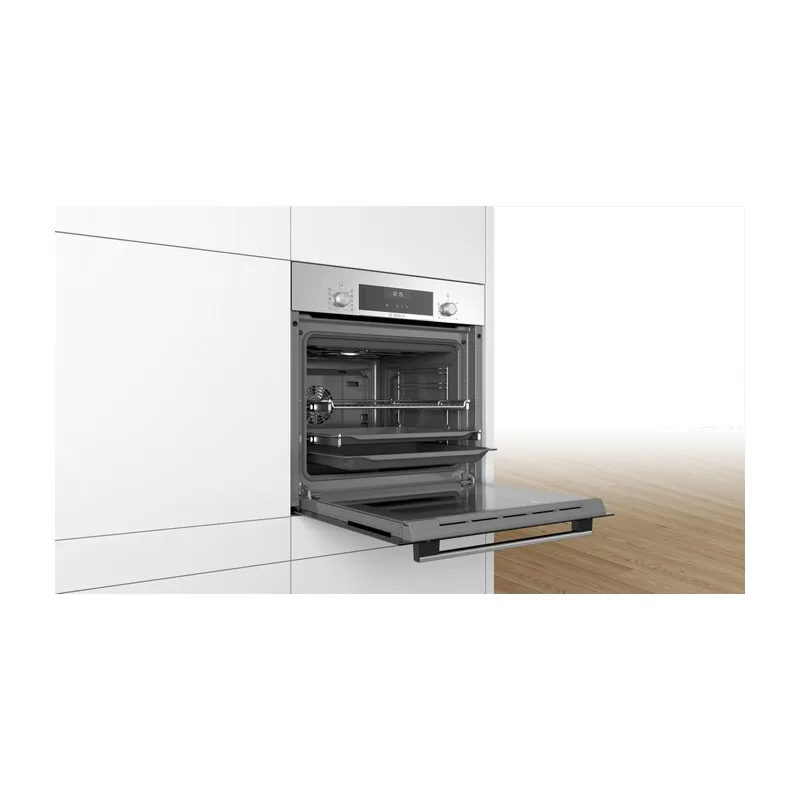 Товарная группа Встраиваемые плиты / духовые шкафы Марка Bosch Обозначение модели/ассортиментная группа встраиваемый духовой шкаф USP text indicating a statement of the main highlight or highlights of the product. Встраиваемый электрический духовой шкаф c функцией "3D-горячий воздух": великолепные результаты выпечки и жарки на трех уровнях одновременно. Название модели/ международный код HBJ517YS0R Номенклатурный номер HBJ517YS0R EAN-код 4242005171217 Цвет прибора нержавеющая сталь Цвет/ материал двери нержавеющая сталь Встраиваемый/ свободностоящий Встроенный Управление механический Управляющие элементы выдвижной, круглый, Поворотный переключатель Встроенные элементы управления варочной панели Нет Материал двери стекло Источник энергии Электро Предохранители (А) 16 Напряжение (В) 220-240 Частота (Гц) 50 Сертификат соответствия CE, VDE Длина сетевого кабеля (см) 100 Тип штепсельной вилки Вилка с заземлением Ширина с учётом открытой дверцы 90 градусов (мм) 1010 Минимальная высота для установки (мм) 575 Максимальная высота для установки (мм) 597 Минимальная ширина для установки (мм) 560 Максимальная ширина для установки (мм) 568 Глубина для установки (мм) 550 Тип энергии Электро Виды нагрева Vario-гриль большой площади, Горячий воздух, Горячий воздух нежный, Гриль с конвекцией, Нижний жар, Пицца: настройки, Режим нагрева верхний/нижний жар Класс энергопотребления NEW (2010/30/EC) A Полезный объем печной трубы 66 Автоматическая программа Да Информация на панели управления Панель печати зонд Нет Принадлежности, входяшие в комплект поставки 1 x Эмалированный противень для выпечки, 1 x Комбинированная решетка, 1 x Универсальный противень Устройство безопасности Блокировка от детей Внутренняя подсветка Да Количество ламп (внутреннее освещение) 1 Направление внутреннего освещения Верх Встроенная система очистки Нет Решетка 1 Установки времени Старт и Стоп Противень 2 Требования к фотографиям продукции MCSA02979703_HBJ517YS0R_BuiltInOven_Bosch_STP_EVO_def.jpg Единственная торговая точка 1 <strong>Удобный и безопасный доступ к блюдам на противнях благодаря плавно выдвигающимся телескопическим направляющим на 2 уровнях.</strong> Единственная торговая точка 2 <strong>3D-горячий воздух: безупречное приготовление нескольких блюд одновременно.</strong> Единственная торговая точка 3 <strong>Одноточечный термощуп: измеряет оптимальную внутреннюю температуру жаркого.</strong> Единственная торговая точка 4 <strong>SoftClose: плавное и бесшумное закрытие дверцы.</strong> Единственная торговая точка 5 <strong>Утапливаемые переключатели: для лёгкой очистки</strong> Страна производства ТУРЦИЯBНЕШНИЙ ВИД ТОВАРА