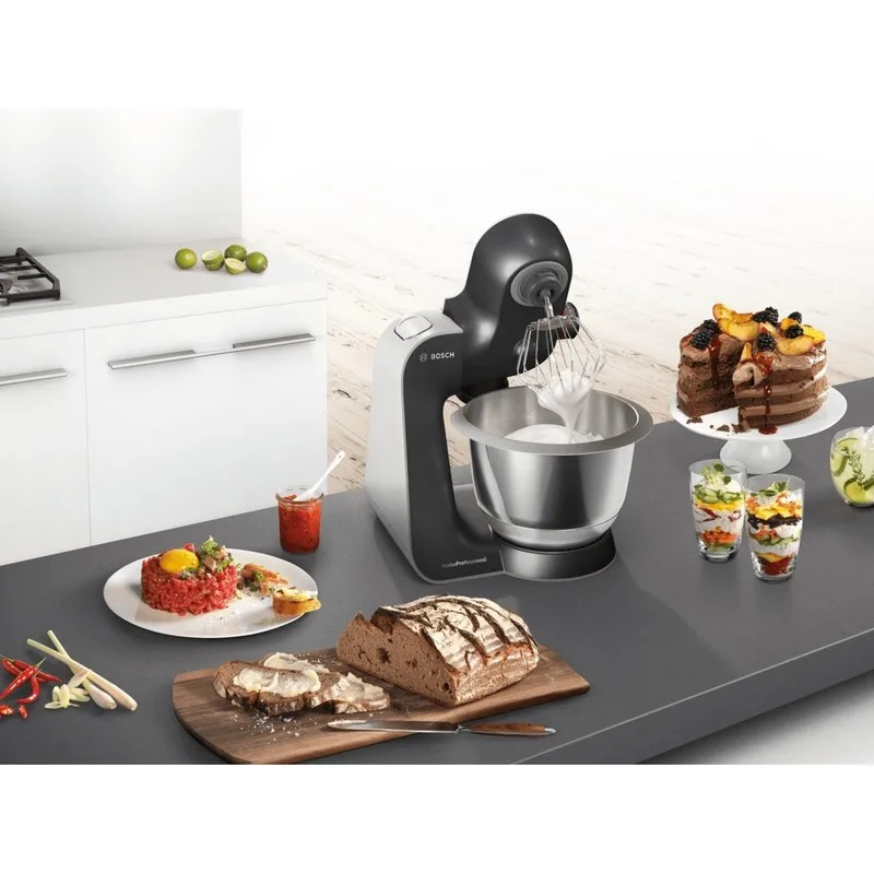 Марка Bosch Обозначение модели/ассортиментная группа Кухонные комбайны USP text indicating a statement of the main highlight or highlights of the product. Благодаря профессиональным насадкам, премиальному дизайну и отличным результатам эта мощная кухонная машина отвечает даже требованиям профессионала. Название модели/ международный код MUM59M55 Номенклатурный номер 000000000000405969 EAN-код 4242002903606 Управляющие элементы Вкл./Выкл. Цвет прибора черный Мощность подключения 1000 Напряжение (В) 220-240 Частота (Гц) 50/60 Сертификат соответствия CE, Eurasian, Ukraine, VDE Длина сетевого кабеля (см) 110.0 Тип штепсельной вилки Вилка без заземления Уровень шума (дБ) 76 Принадлежности, входяшие в комплект поставки 1 x Мясорубка, 1 x Пресс для цитрусовых Специальные принадлежности MUZ45AG1 Требования к фотографиям продукции MCSA01015124_F8784_MUM59M55_638324_def.jpg Единственная торговая точка 1 <strong>Большая чаша 3,9л из нержавеющей стали: со специальной внутренней формой для оптимального приготовления теста. (до 2,7 кг теста для тортов или 1,9 кг дрожжевого теста)</strong> Единственная торговая точка 2 <strong>3D планетарный принцип вращения: насадки вращаются сразу в трех направлениях по планетарному принципу - никаких остатков на дне и стенках чаши и домешивания руками.</strong> Единственная торговая точка 3 <strong>7 скоростных режимов работы плюс импульсный режим.</strong> Единственная торговая точка 4 <strong>Автоматическая парковка: кондитерские насадки останавливаются в положении, удобном для их извлечения.</strong> Единственная торговая точка 5 <strong>Система Easy Arm Lift: автоматическое поднятие рычага одним нажатием кнопки - для удобной смены насадок.</strong> Страна производства СЛОВЕНИЯBНЕШНИЙ ВИД ТОВАРА