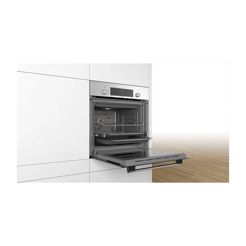 Товарная группа Встраиваемые плиты / духовые шкафы Марка Bosch Обозначение модели/ассортиментная группа встраиваемый духовой шкаф USP text indicating a statement of the main highlight or highlights of the product. Духовой шкаф с режимом "3D горячий воздух": одинаково превосходный результат на всех 3 уровнях. Самоочищающееся покрытие EcoClean Direct облегчает уход. Название модели/ международный код HBF534ES0R Номенклатурный номер HBF534ES0R EAN-код 4242005047864 Цвет прибора нержавеющая сталь Цвет/ материал двери нержавеющая сталь Встраиваемый/ свободностоящий Встроенный Управление механический Управляющие элементы выдвижной, круглый, Поворотный переключатель Встроенные элементы управления варочной панели Нет Материал двери стекло Источник энергии Электро Предохранители (А) 16 Напряжение (В) 220-240 Частота (Гц) 60; 50 Сертификат соответствия CE, VDE Длина сетевого кабеля (см) 100 Тип штепсельной вилки Вилка с заземлением Ширина с учётом открытой дверцы 90 градусов (мм) 1010 Минимальная высота для установки (мм) 575 Максимальная высота для установки (мм) 597 Минимальная ширина для установки (мм) 560 Максимальная ширина для установки (мм) 568 Глубина для установки (мм) 550 Тип энергии Электро Виды нагрева Hotair gentle, Vario-гриль большой площади, Горячий воздух, Гриль с конвекцией, Нижний жар, Пицца: настройки, Режим нагрева верхний/нижний жар Класс энергопотребления NEW (2010/30/EC) A Полезный объем печной трубы 66 Автоматическая программа Нет Информация на панели управления Fascia printing зонд Нет Принадлежности, входяшие в комплект поставки 1 x Эмалированный противень для выпечки, 1 x Комбинированная решетка, 1 x Универсальный противень Устройство безопасности Блокировка от детей Внутренняя подсветка Да Количество ламп (внутреннее освещение) 1 Направление внутреннего освещения Верх Решетка 1 Установки времени Старт и Стоп Противень 2 Требования к фотографиям продукции MCSA02401828_HBF514BS0R_BuiltInOven_Bosch_STP_EVO_def.jpg Единственная торговая точка 1 <strong>EcoClean Direct: легкий и быстрый уход.</strong> Единственная торговая точка 2 <strong>Телескопические направляющие противней: удобный и безопасный доступ к блюдам на нужном уровне.</strong> Единственная торговая точка 3 <strong>3D-горячий воздух: безупречное приготовление нескольких блюд одновременно.</strong> Единственная торговая точка 4 <strong>LED дисплей: легкий в использовании благодаря функции таймера.</strong> Единственная торговая точка 5 <strong>Утапливаемые переключатели: для лёгкой очистки</strong> Страна производства ТУРЦИЯBНЕШНИЙ ВИД ТОВАРА