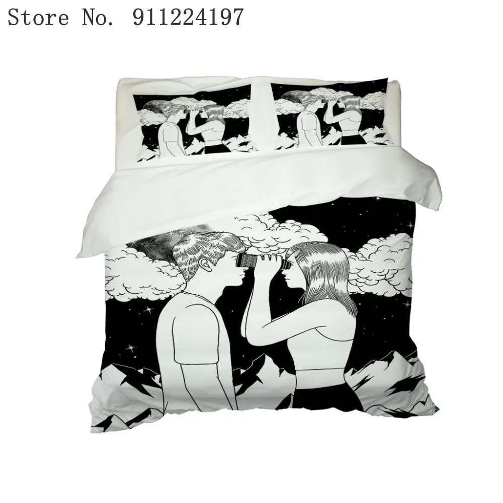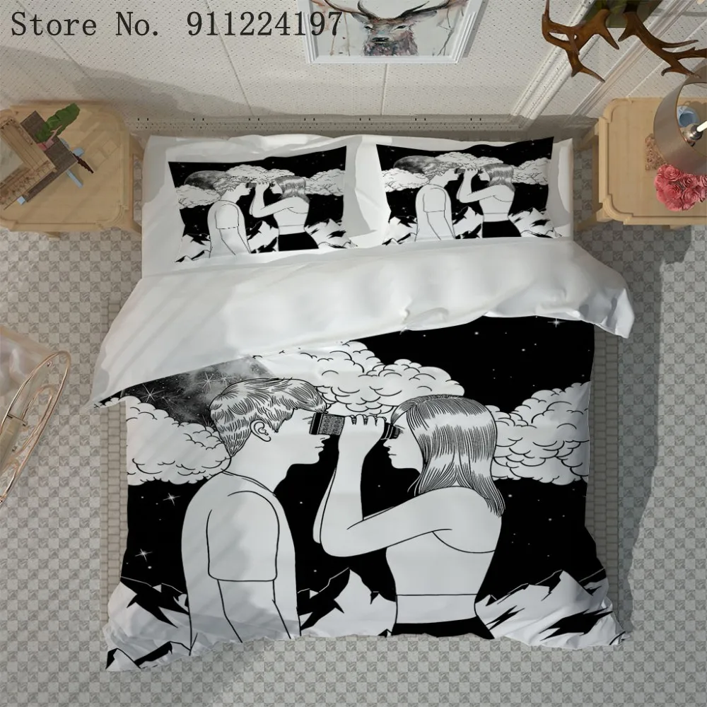 3D печать Постельное белье пары пододеяльник набор Queen King Размеры 2/3 шт. роскошный черный и белый постельное белье постельное бельё из микроволокна