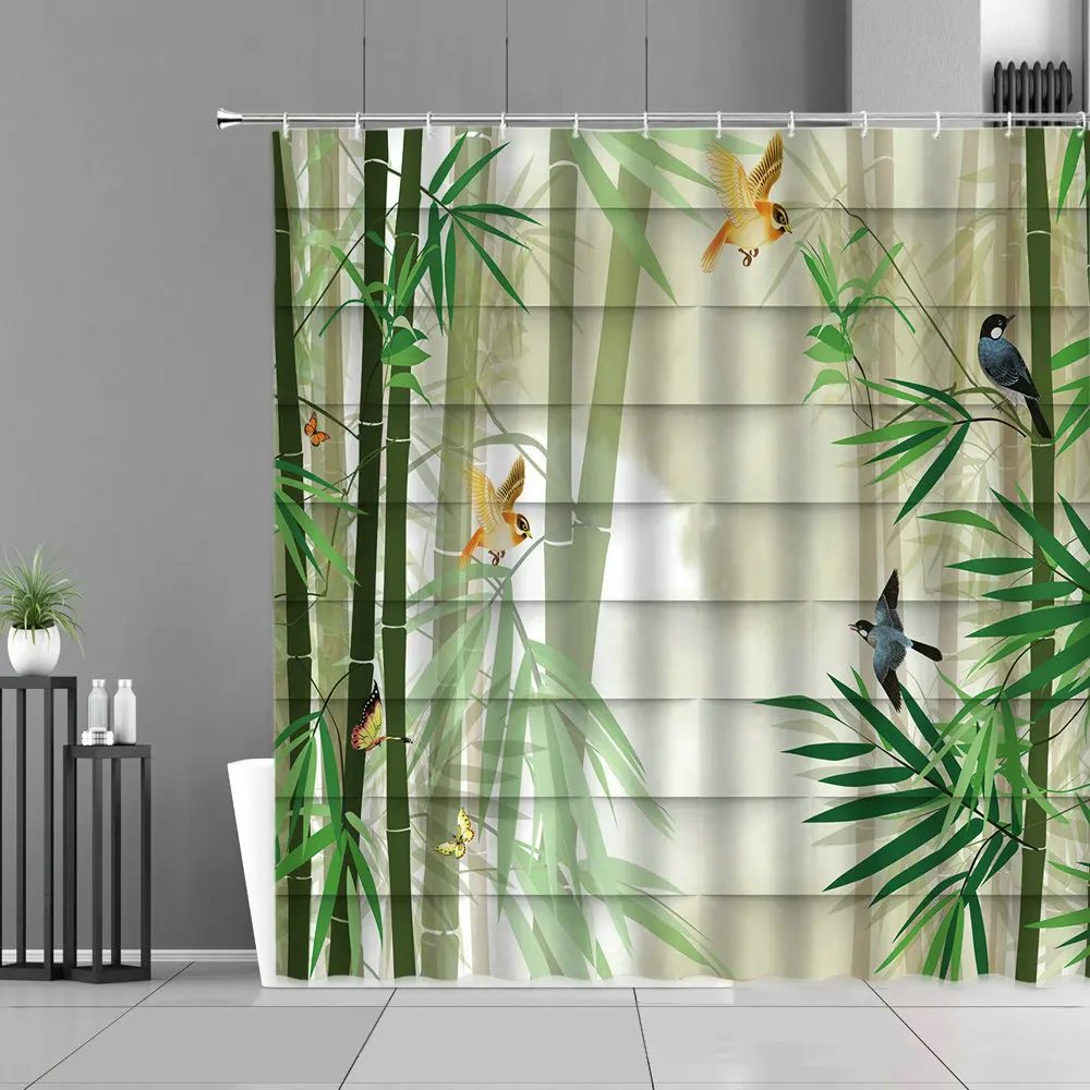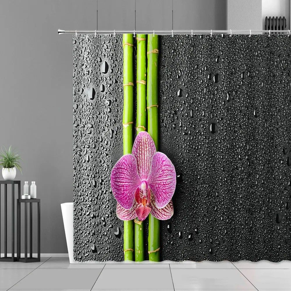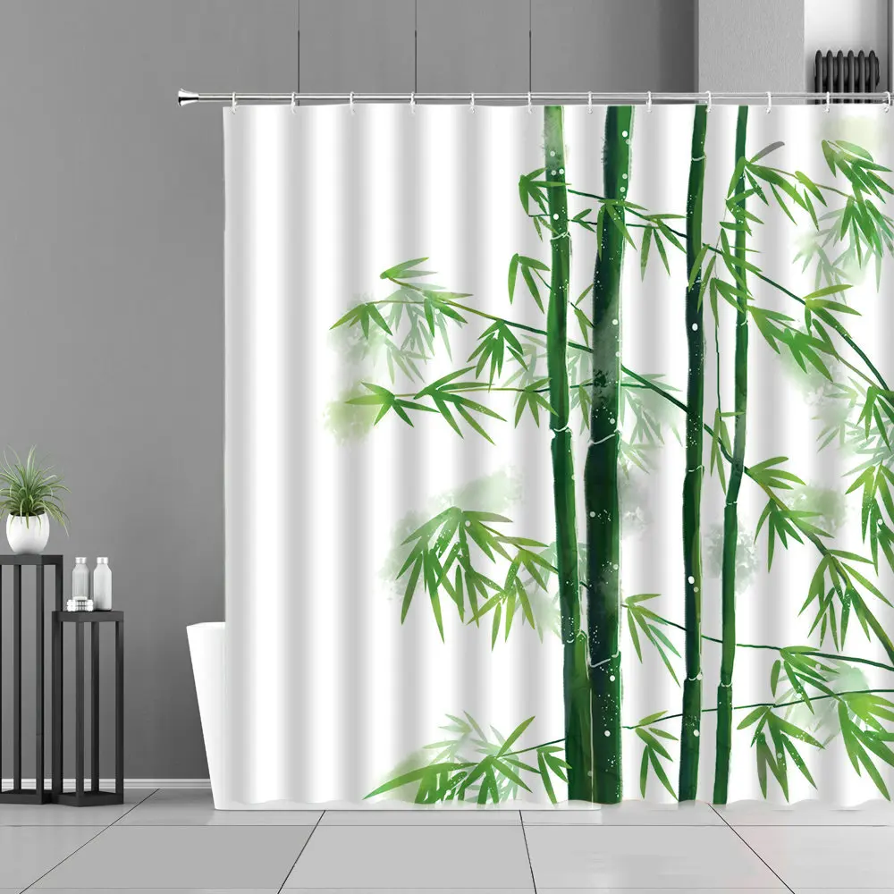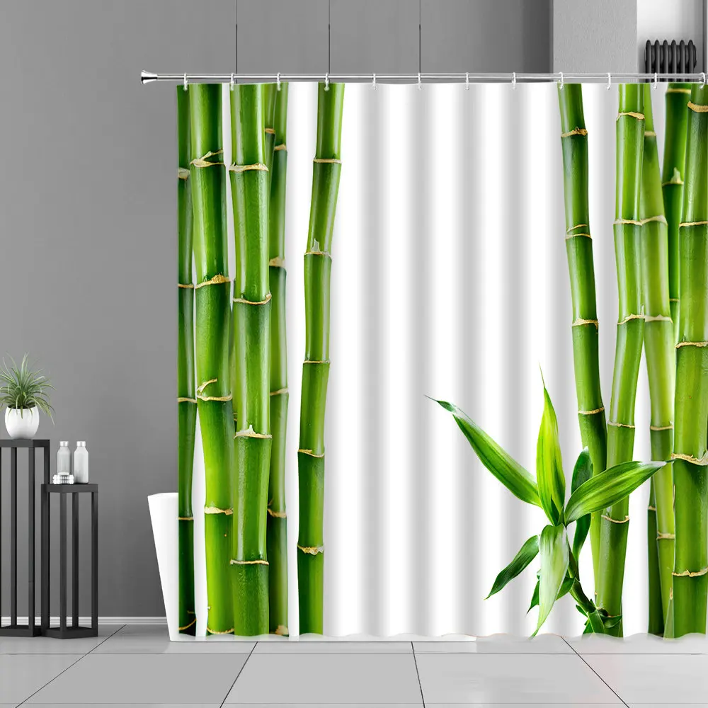Зеленые Бамбуковые растения лист занавески для душа s Zen каменный цветок пейзаж для дома ванная комната Декор Водонепроницаемая занавеска фоновая ткань