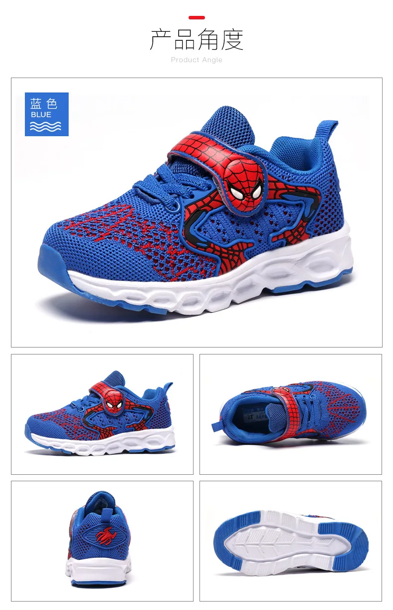 Детские светящиеся кроссовки с героями мультфильмов Disney, дышащая Спортивная обувь для мальчиков, размер 26-37, новинка 2021, обувь для человека-паука