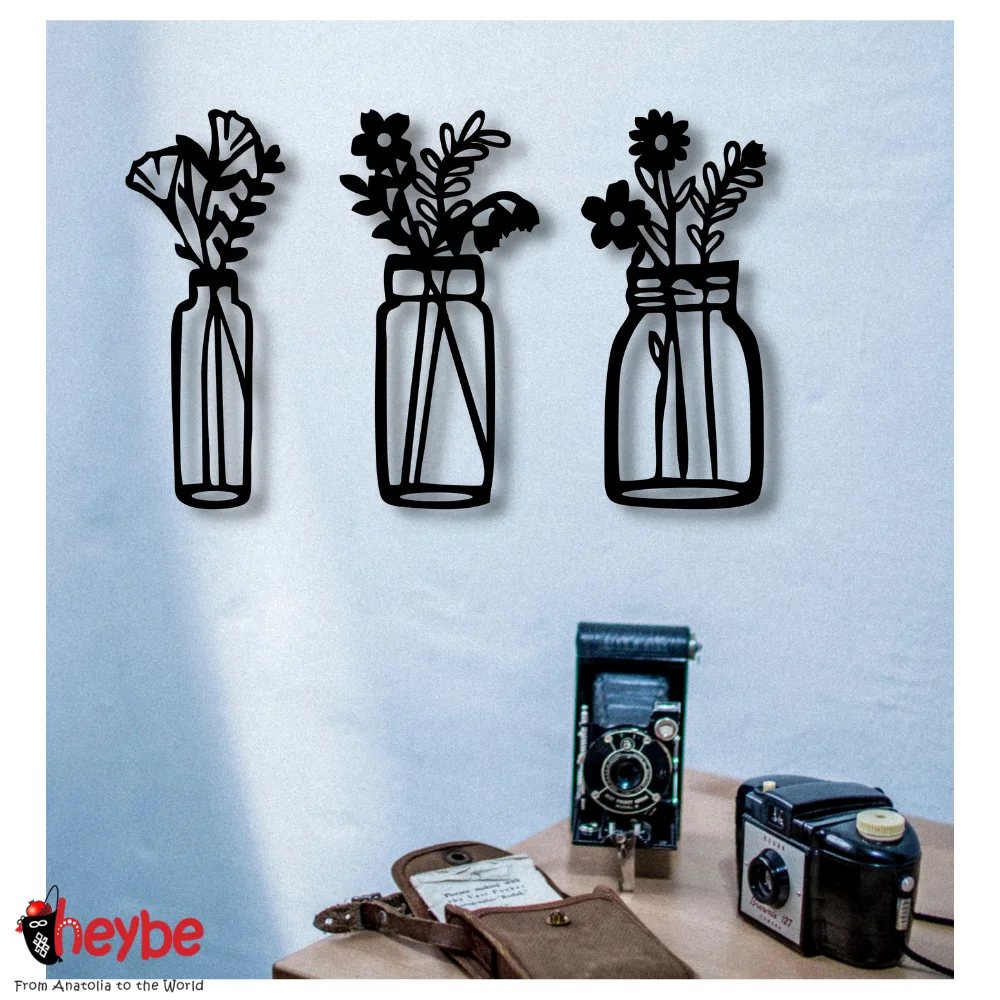 Деревянная настенная декоративная и художественная ваза для цветов из 3 частей