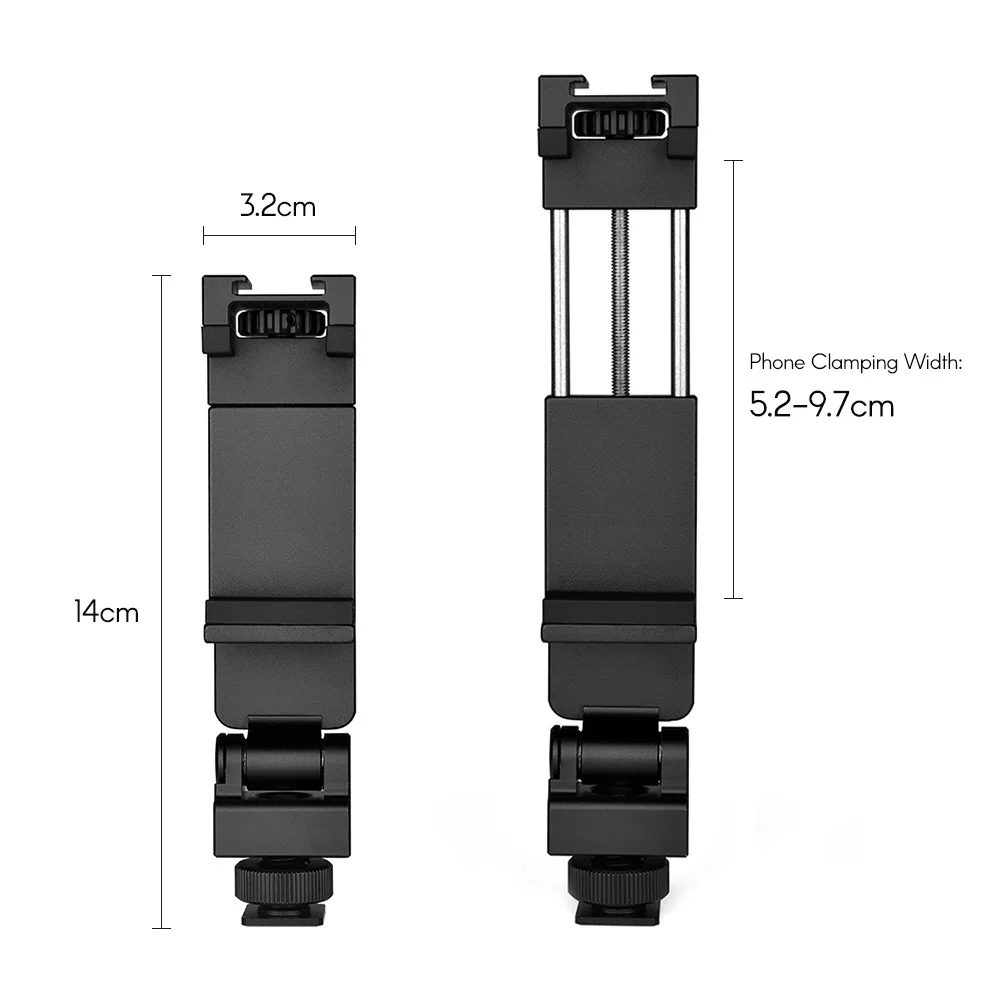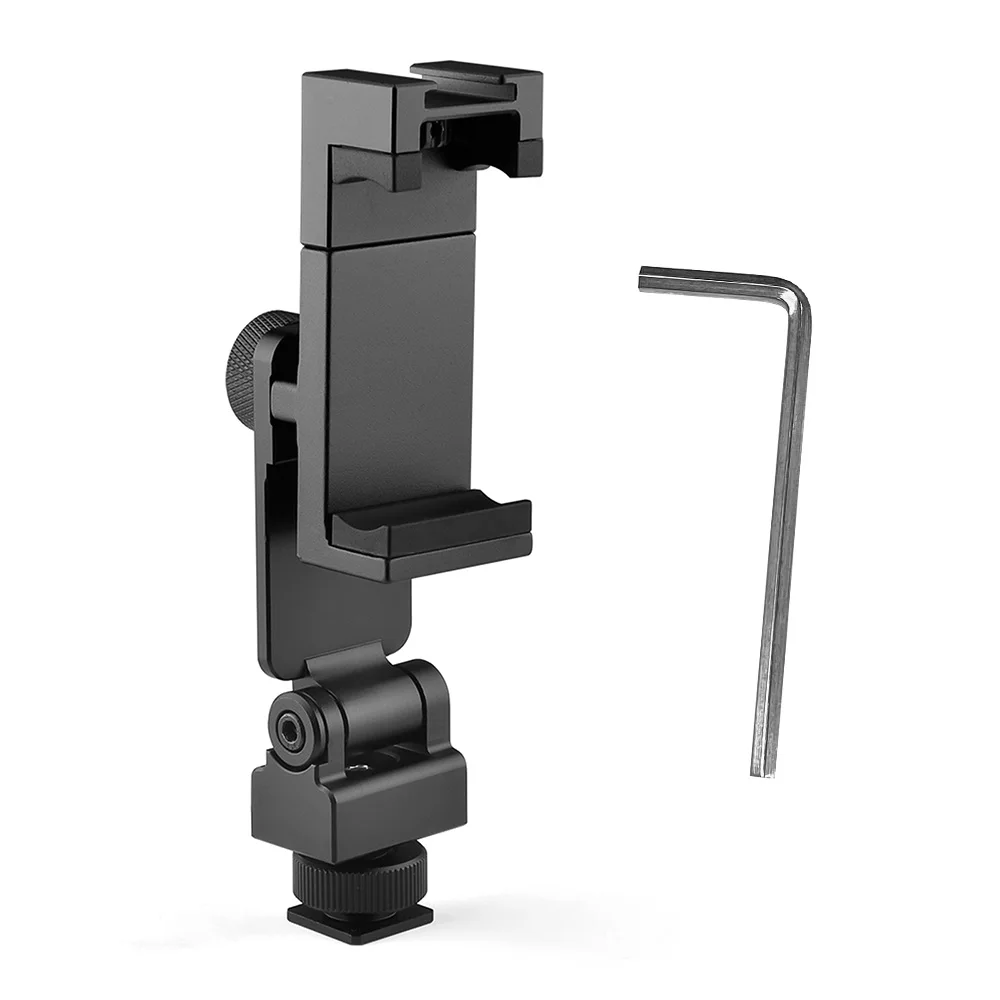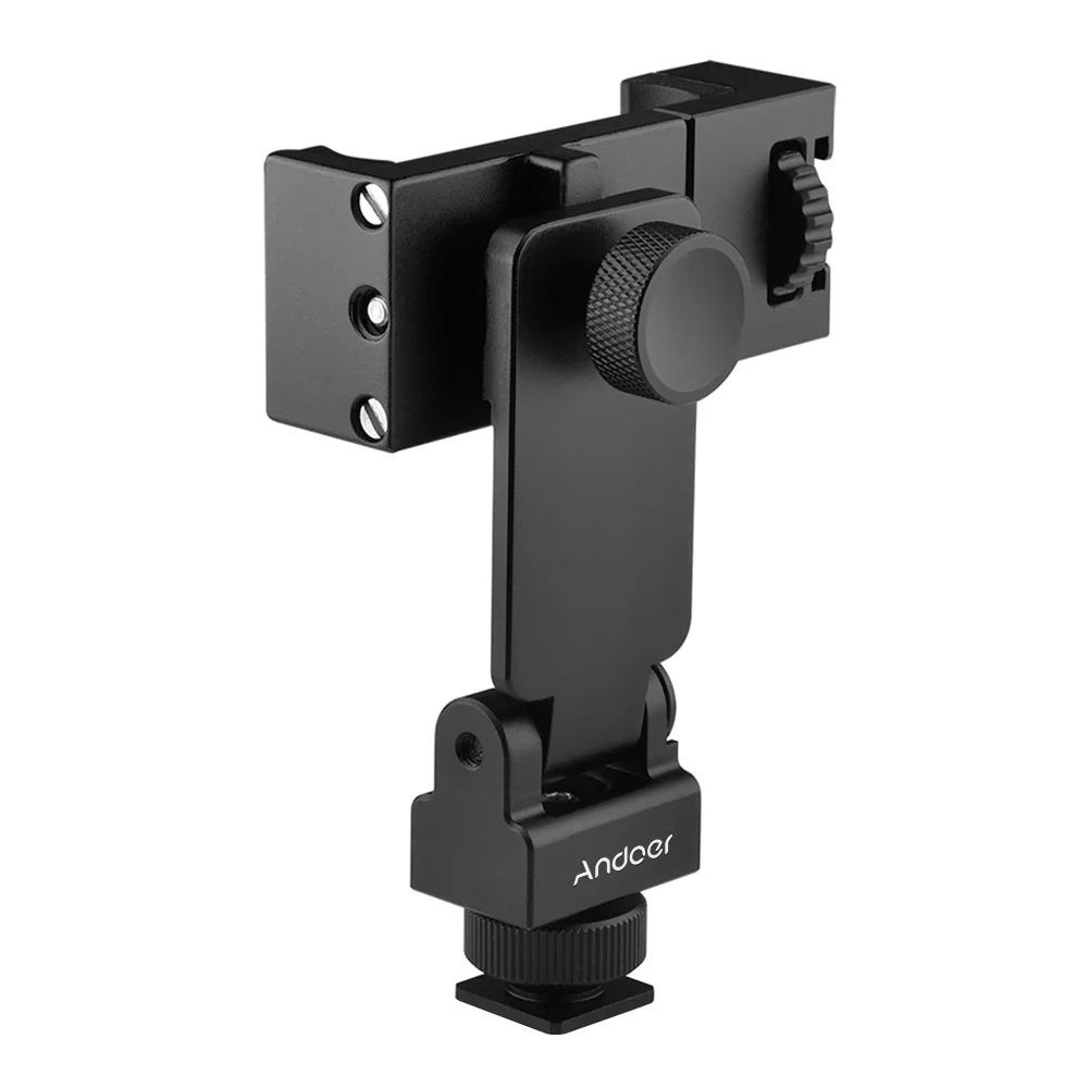 Andoer алюминиевый сплав Холодный башмак телефон зажим подставка 360 ° горизонтальное вращение 180 ° флип со светодиодной подсветкой для смартфона видео