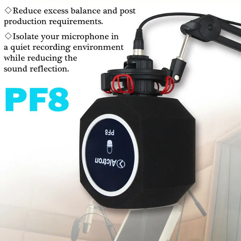 PF8 изготовлен из высококачественной шумопонижающей пены и имеет модную и модную форму. Пена с шумоподавлением поглощает и отражает Окружающий шум. PF8 изолирует микрофон в тихом пространстве записи. Фокусируя голос на изолированном микрофоне, PF8 может захватить весь спектр вашего голоса и уменьшить внешнюю среду, при этом предоставляя вам четкий и лаконичный голос без какого-либо окраски. Ветровой экран PF8 может не только уменьшить отражение звука во время записи, но и эффективно уменьшить внешний шум ветра и помехи.