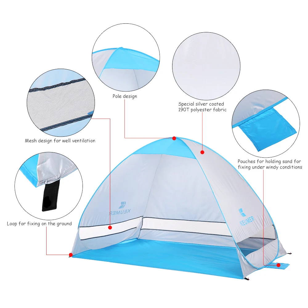 Эта открывающаяся Пляжная палатка может быть автоматически открыта за считанные секунды, когда вы выбрасываете ее. Он изготовлен из полиэфирной ткани 190T, водостойкий и с защитой от ультрафиолета. Сетчатые окошки с трех сторон позволяют наслаждаться ветерком от природы. Подходит для заднего двора, пляжа, парка, луга и других мероприятий на открытом воздухе.