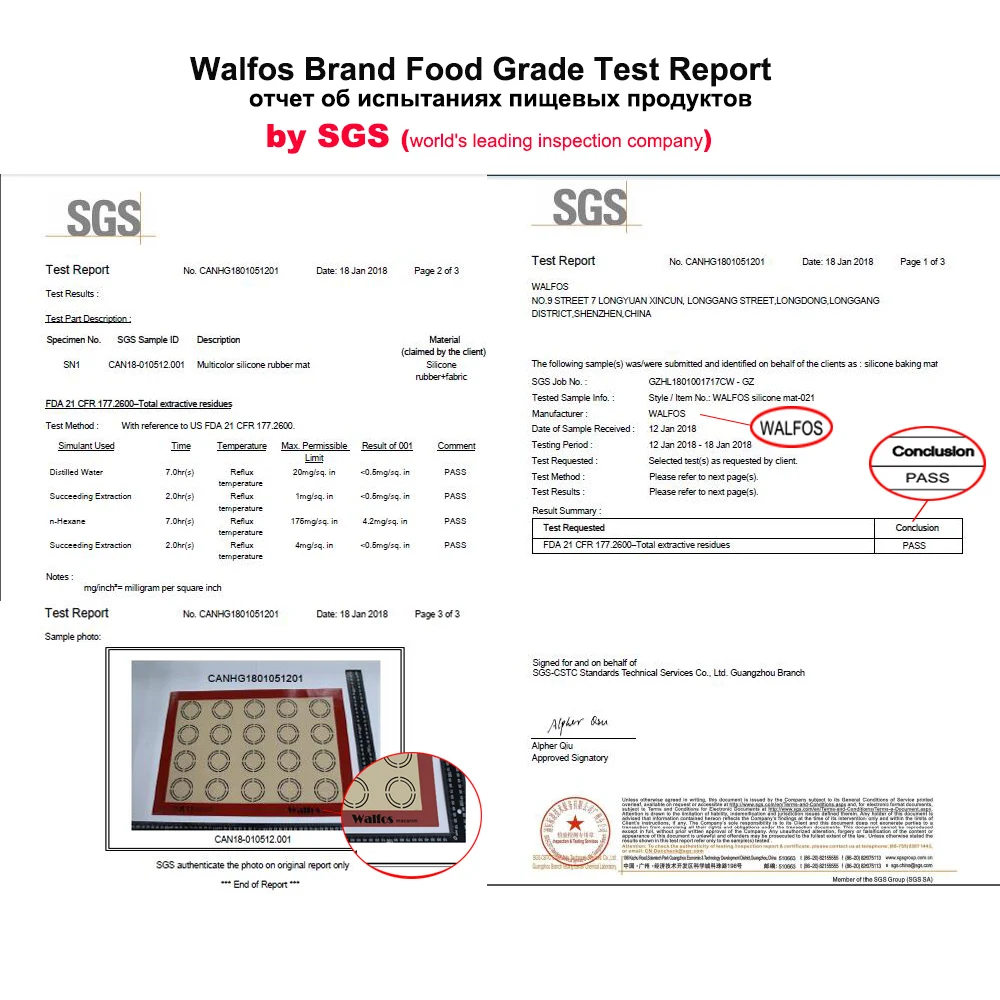 От SGSCompany (Ведущая мировая инспекционная компания) У некоторых поставщиков нет отчета SGS или поддельного отчета У Walfos есть настоящий отчет об испытаниях пищевого класса от SGS Изделия walfos очень безопасны для вашей семьи!