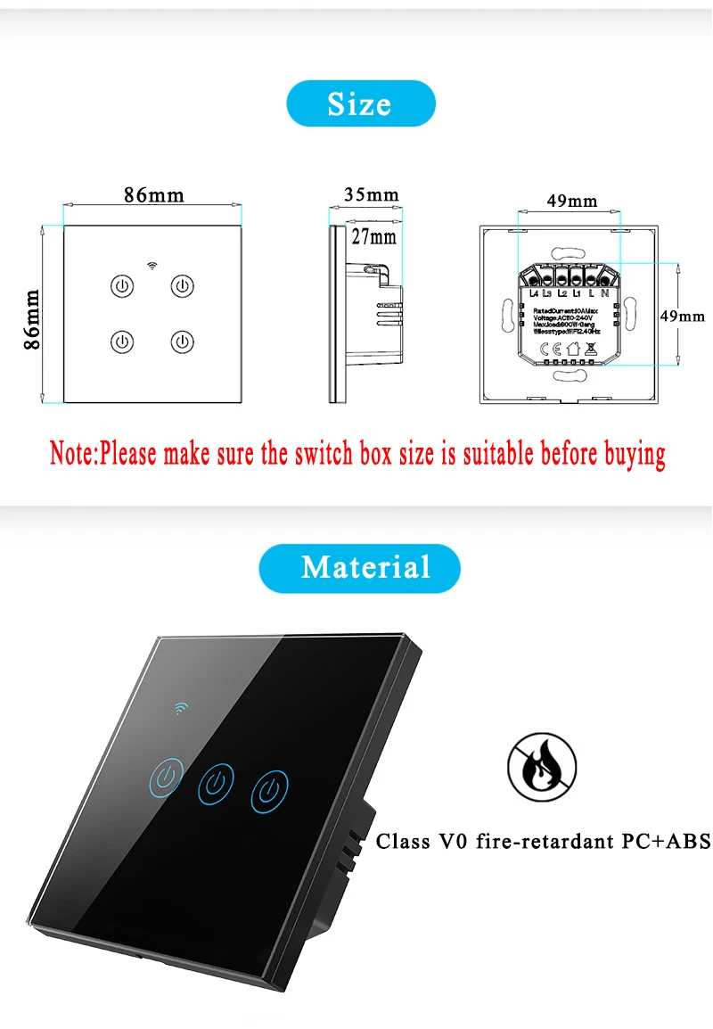 Стеклянный сенсорный экран этого Смарт-переключателя чувствителен к прикосновениям