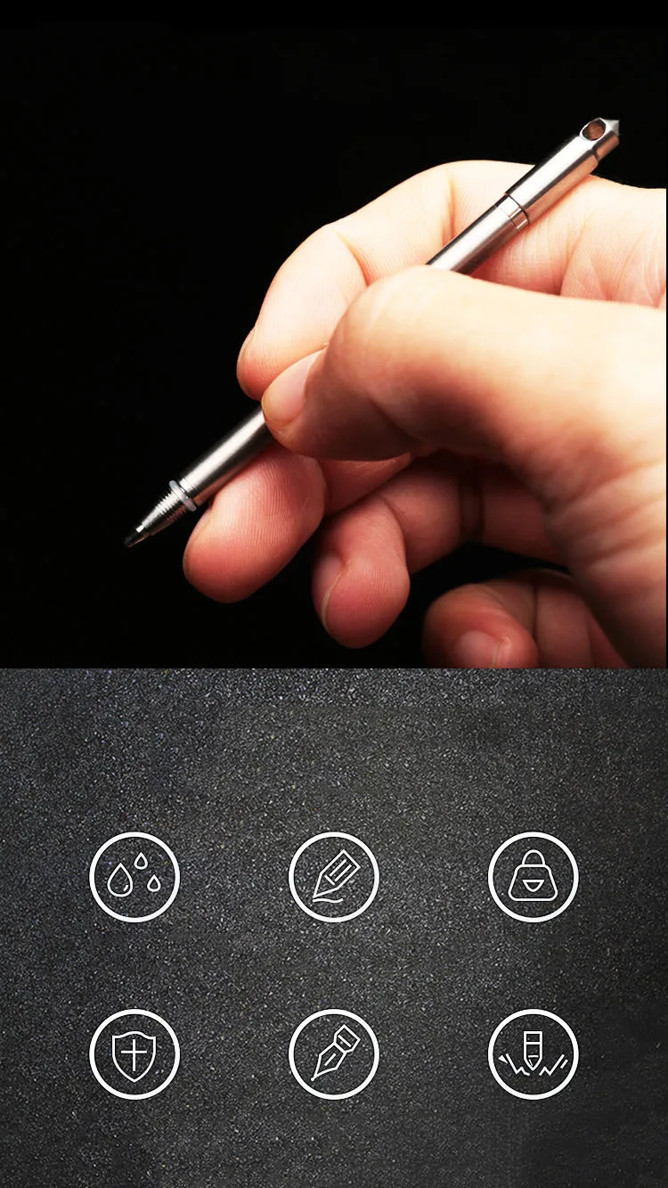 ХарактеристикаАбсолютно новый и высокое качествоПриятный внешний вид, обтекаемая формаИзготовлен из высококачественного титанового сплава, прочный и прочныйМногофункциональность: ручка для письма, аварийный стеклянный выключательОбычный размер ручки, портативный и практичныйБолее удобный в использованииУдарная головка из вольфрамовой стали, используется в качестве инструмента самозащиты и аварийного выключателя окнаГладкая деловая ручка, Круглый наконечник ручки, удобная и стабильнаяИдеально подходит для коллекции или на день рождения, рождественский подарокСпецификацияРазмер:Approx.7.6 x 0,4 см (Длина x Диаметр)Вес: около3,8 гМатериал:Корпус: титановый сплав, головка: Вольфрамовая стальЧто в1XTactical PenПоказано на картинке