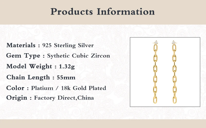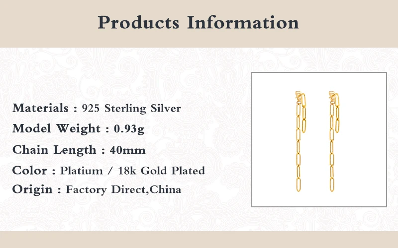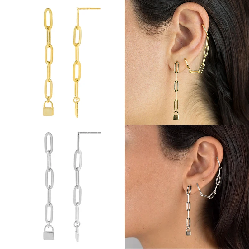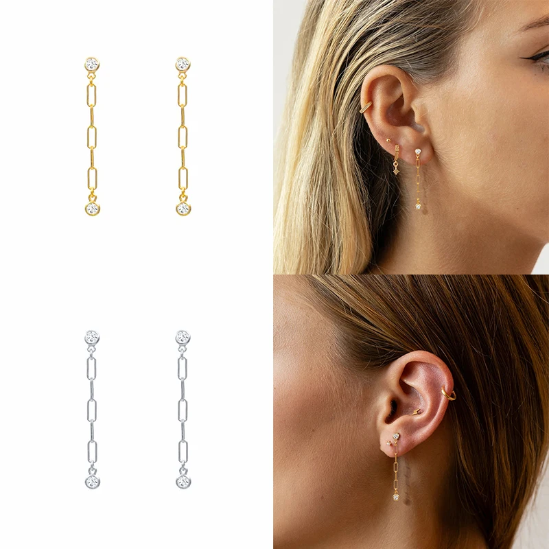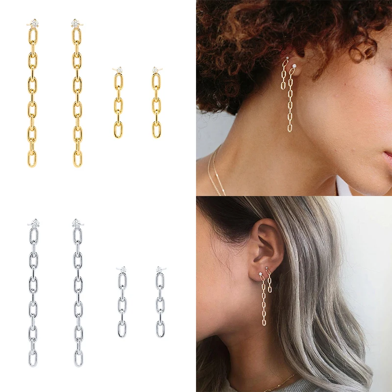 【Тип товара 】:Длинные серьги-гвоздики с цепочкой-скрепкой