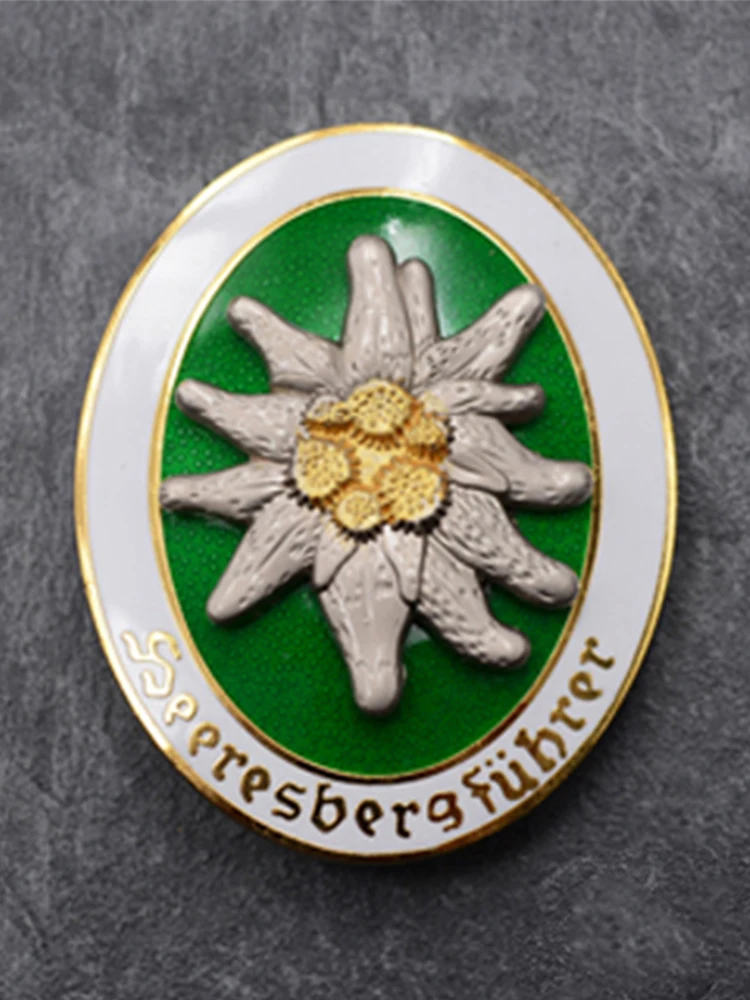 WW2 немецкие горные военные кавалерия Эдельвейс медаль металлический бейдж; Брошь на булавке золото