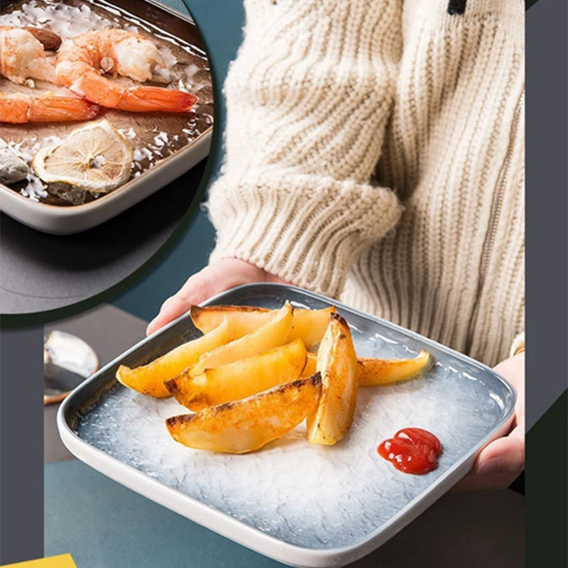 2 шт. фарфоровая квадратная десертная тарелка для салата с уникальным дизайном каменной текстуры, обеденная паста, Сервировочная тарелка для стейка