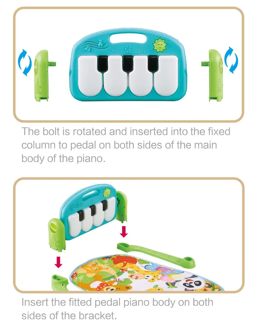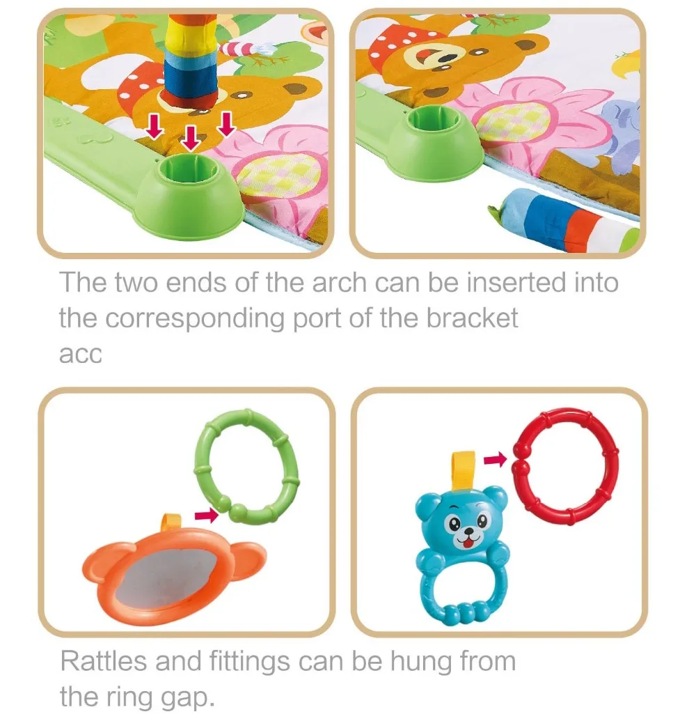 Описание товара Название продукта: Детский ковер для тренажерного зала Материал: хлопок, пластик Размер коврика: 76*63*45 см Музыкальное пианино: товара занимает 2-3*1,5 V AA Батарея (не входит в комплект) Характеристики: 3 режима музыкального пианино с мягким светильник/сенсорный или удар для игры/мягкий лежащий коврик/игрушки и зеркало