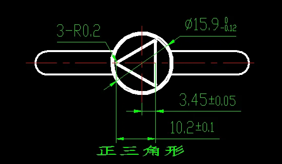 Ключ подходит для треугольного замка, длина равностороннего треугольника составляет 9,87 мм, а диаметр отверстия для ключа составляет 15,9 мм. Вы можете подробно ознакомиться со следующими чертежами.