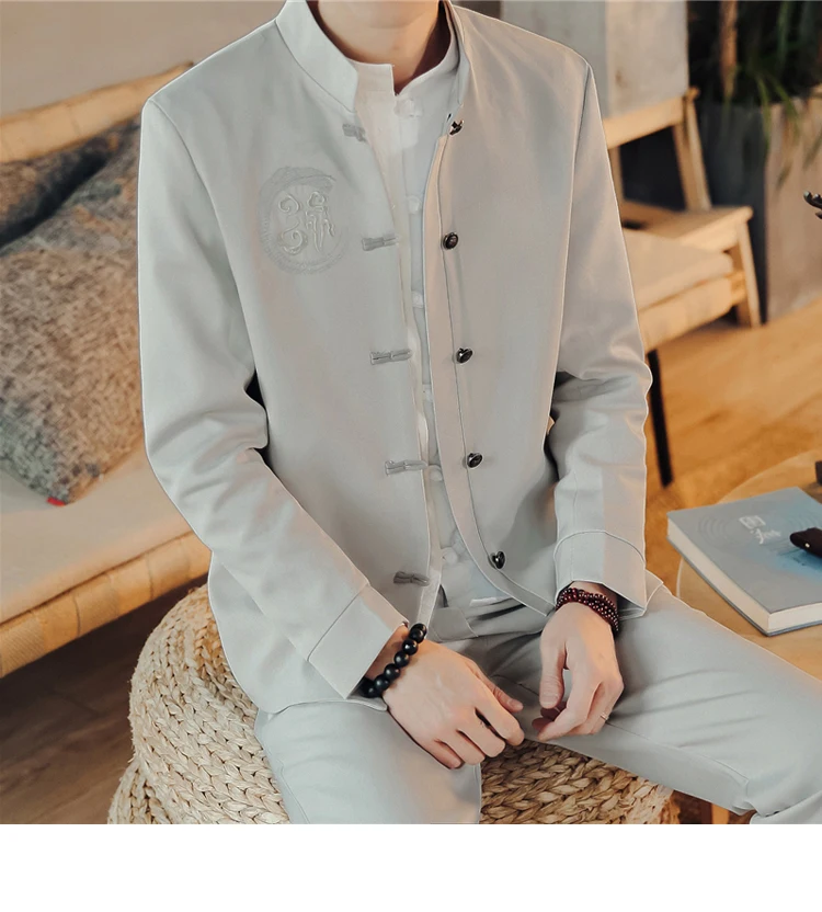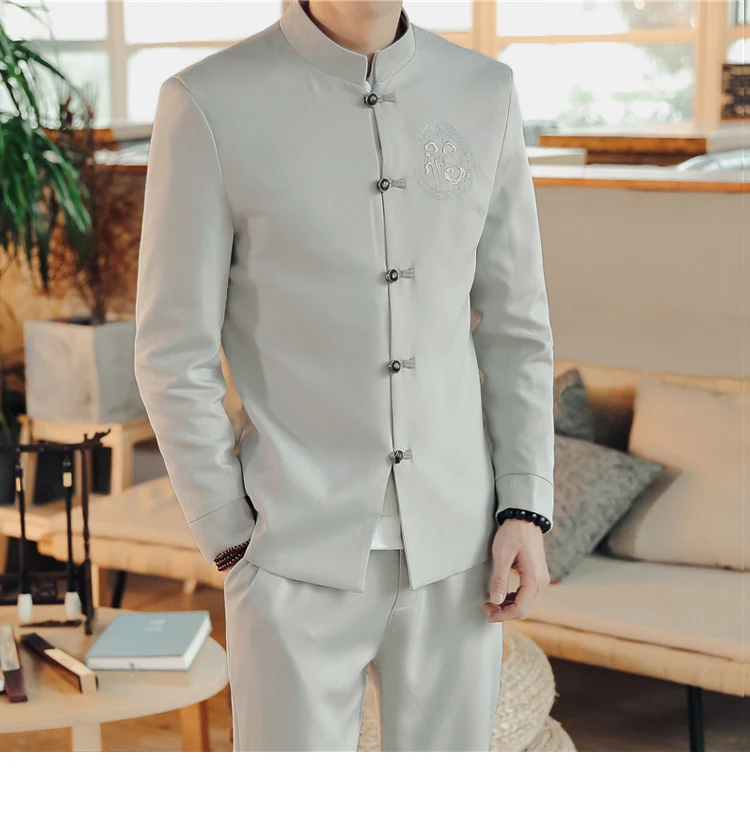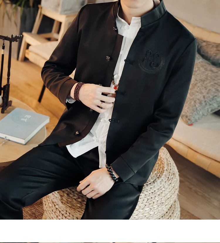 Скидка белая традиционная китайская одежда для мужчин, черный Zhongshan Fu, вышивка, костюмы из 2 предметов, приталенный воротник-стойка, куртка Tang