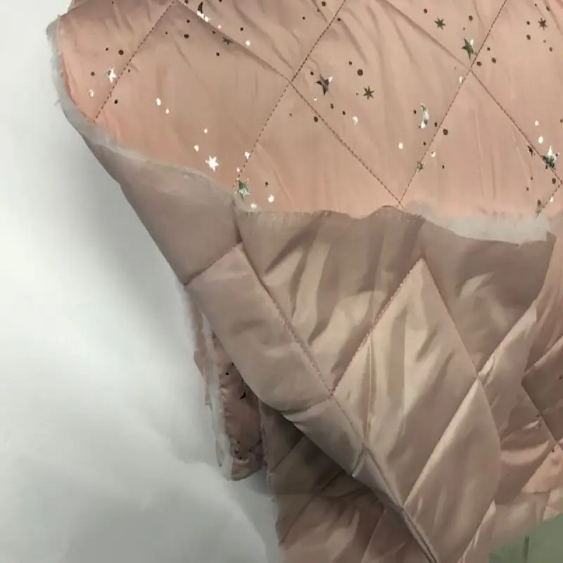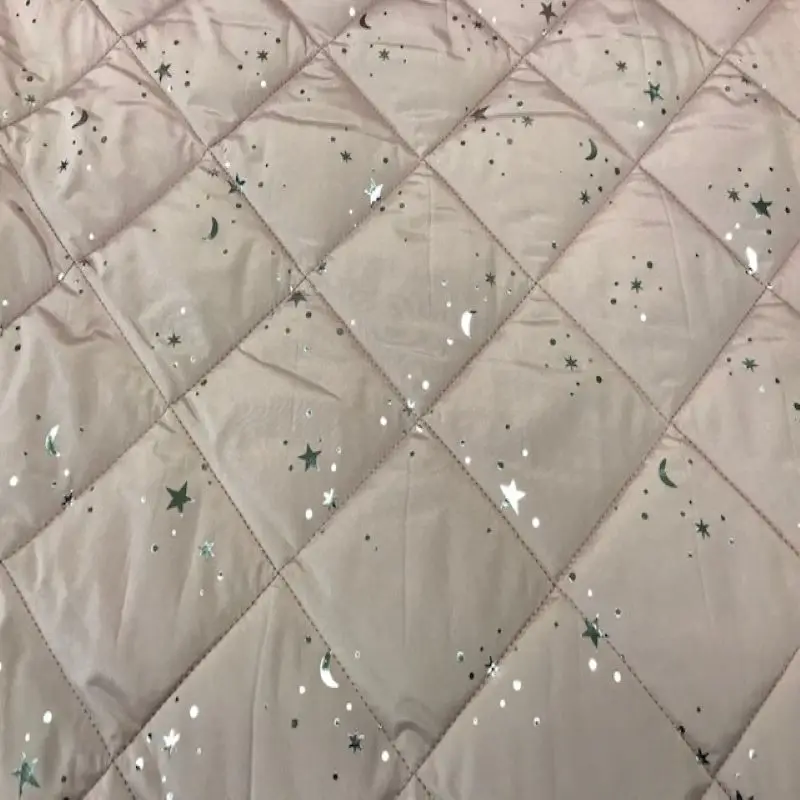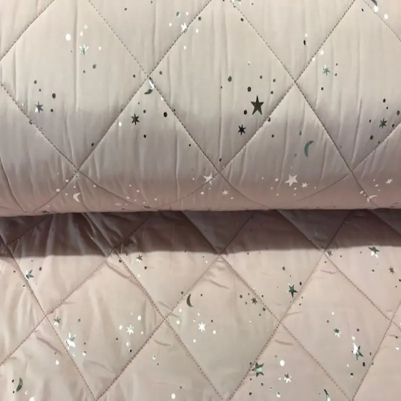 Стеганая полиэфирная ткань, в розовом порошке, с пришитым ромбовидным размером около 13 сантиметров. Ткань сочетается с маленькими рисунками звезд и серебряных Лун. Легко сделать все виды курток, как для детской модной, так и для взрослой моды. Он также сочетает в себе добавки, чтобы сделать Готовые одежды, капюшоны и т. Д. Водонепроницаемая ткань. Ткань Grammage: 220 гр./м2. Ширина: 140 см