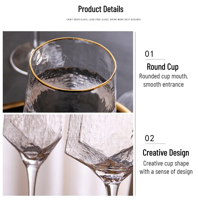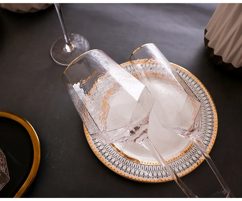 Wine Glasses Home Hammered Goblet Creative Glass Cups Red Wine Diamond Champagne Brandy Wedding Luxury Drinkware бокалы стакан