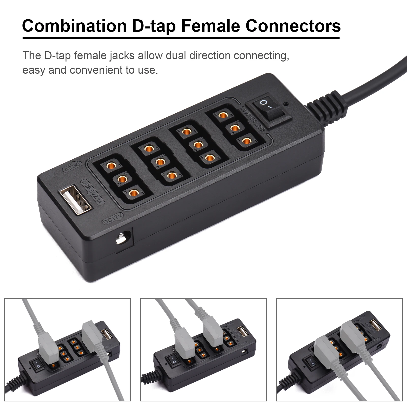 Разъем D-Tap Male & Female:С 1 разъемом D-tap и 4 комбинированными разъемами D-tap female. Женские гнезда D-tap позволяют соединять два направления, просты и удобны в использовании.