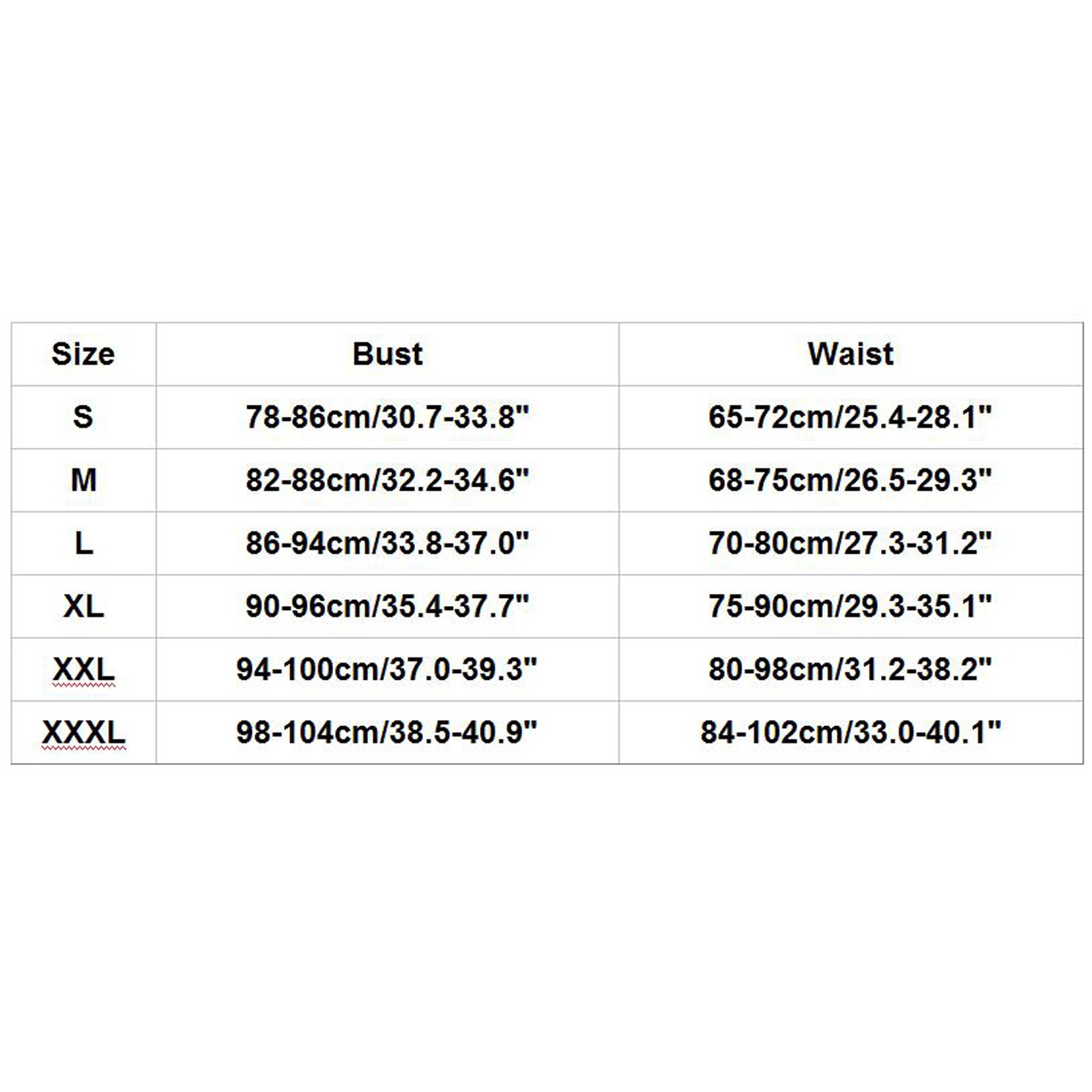 Размеры Бюст Талия S 68 ~ 84 см/26,8 "~ 33,1" 64-88 см/25,2-34,6" М 76 ~ 92 см/29,9 "~ 36,2" 72 ~ 96 см/28,3 "~ 37,8" L 80 ~ 96 см/31,5 "~ 37,8" 76 ~ 100 см/29,9 "~ 39,4" XL 84 ~ 100 см/33,1 "~ 39,4" 80 ~ 104 см/31,5 "~ 41,0" XXL 88 ~ 104 см/34,6 ~ 40,9" 84-108 см/33,1-42,5" XХХL 92-108 см/36,2 "-42,5" 88-112 см/34,6-44,1"